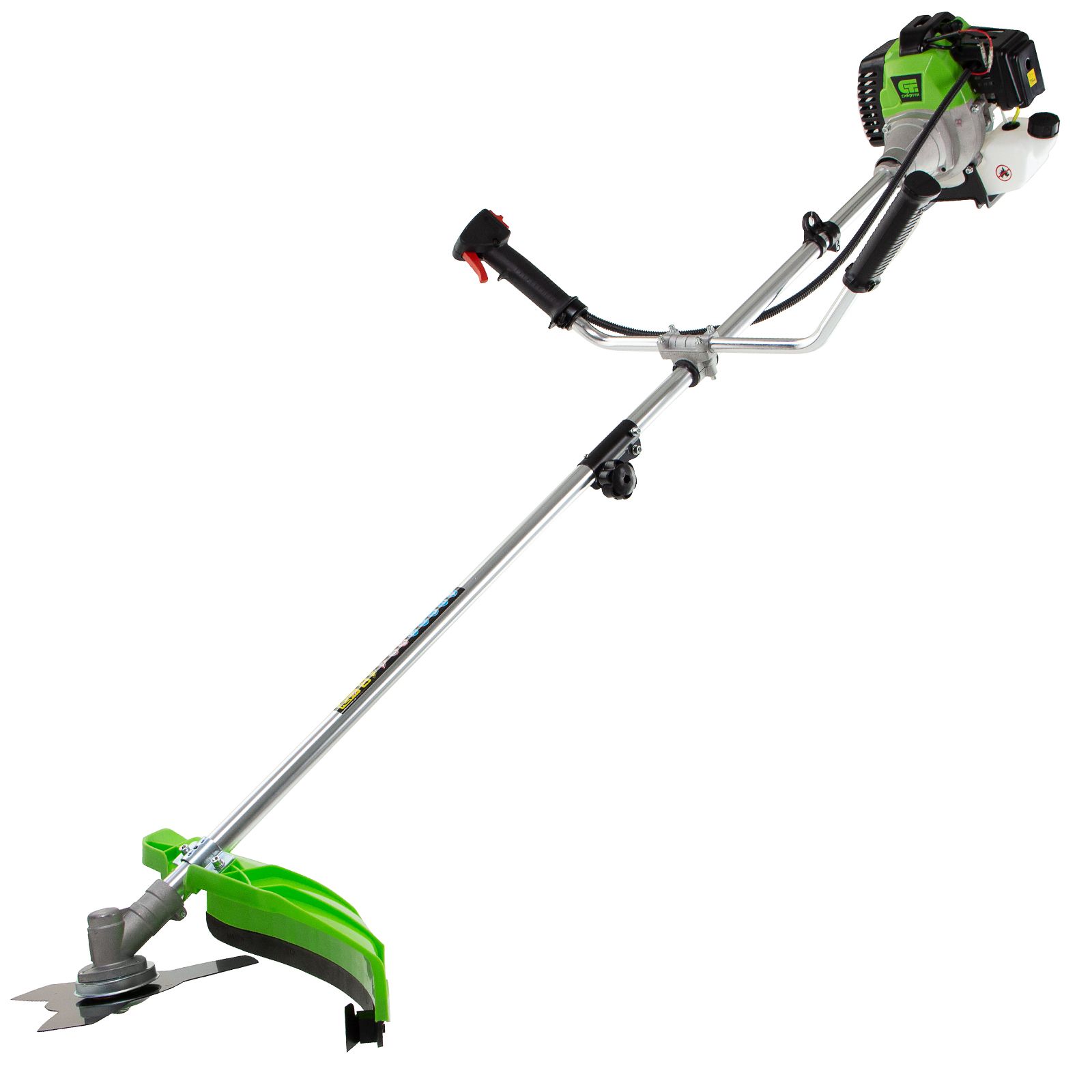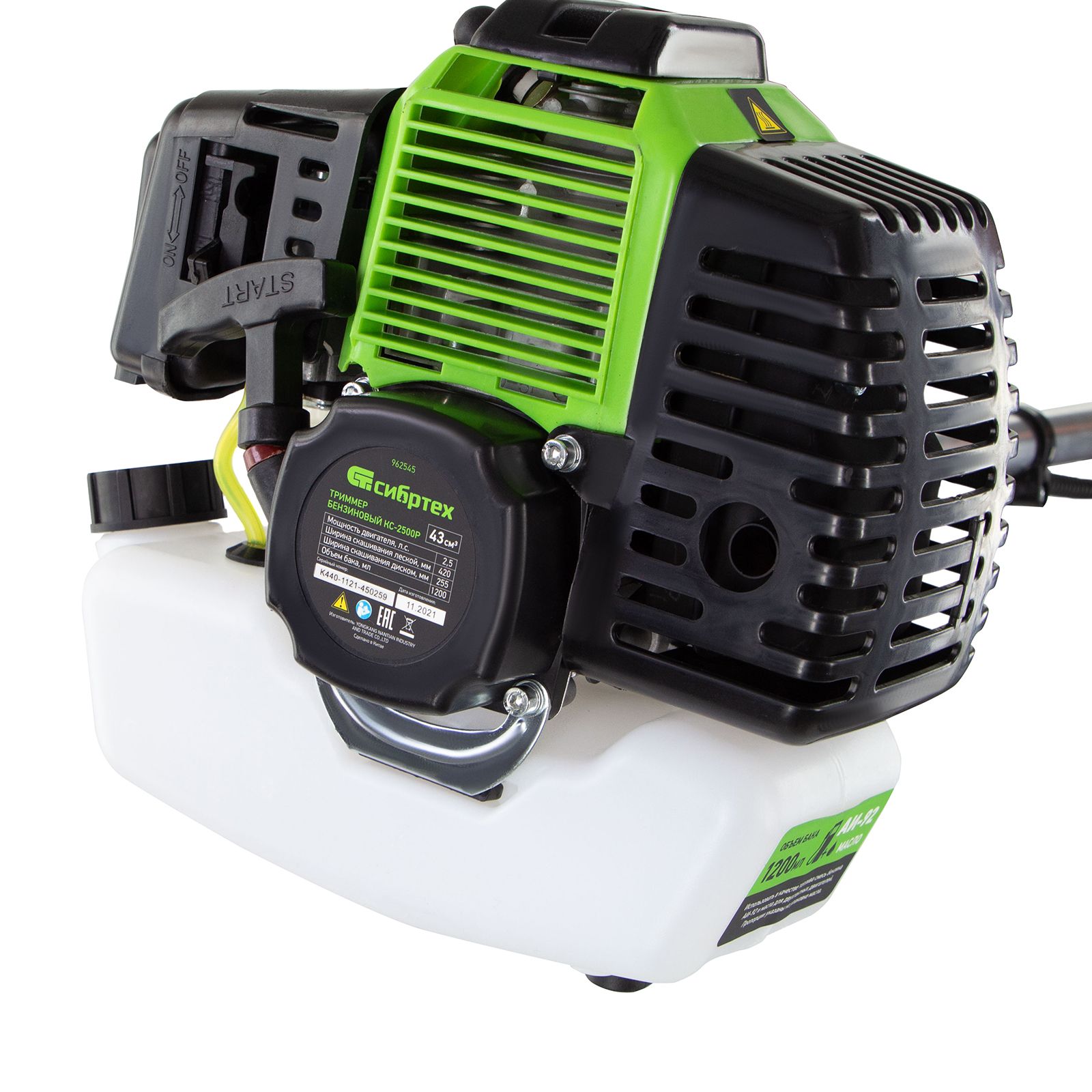 Бензиновый триммер Сибртех КС-2500Р 962545 с разъемной штангой, поставляющийся комплектом из 2 частей, имеет двигатель объемом 43 куб. см и мощностью 2,5 л. с., благодаря чему успешно справляется с подравниванием газона, скашиванием травы на лужайке и уничтожением сорняков. Выполнение этих задач облегчают режущие элементы — катушка с леской и трехлопастный нож. Леской триммер скашивает 42 см за один проход, а ножом — 25,5 см, поэтому можно за короткое время привести дачный участок в порядок. Благодаря разборной штанге мотокоса не занимает много места во время хранения и транспортировки.