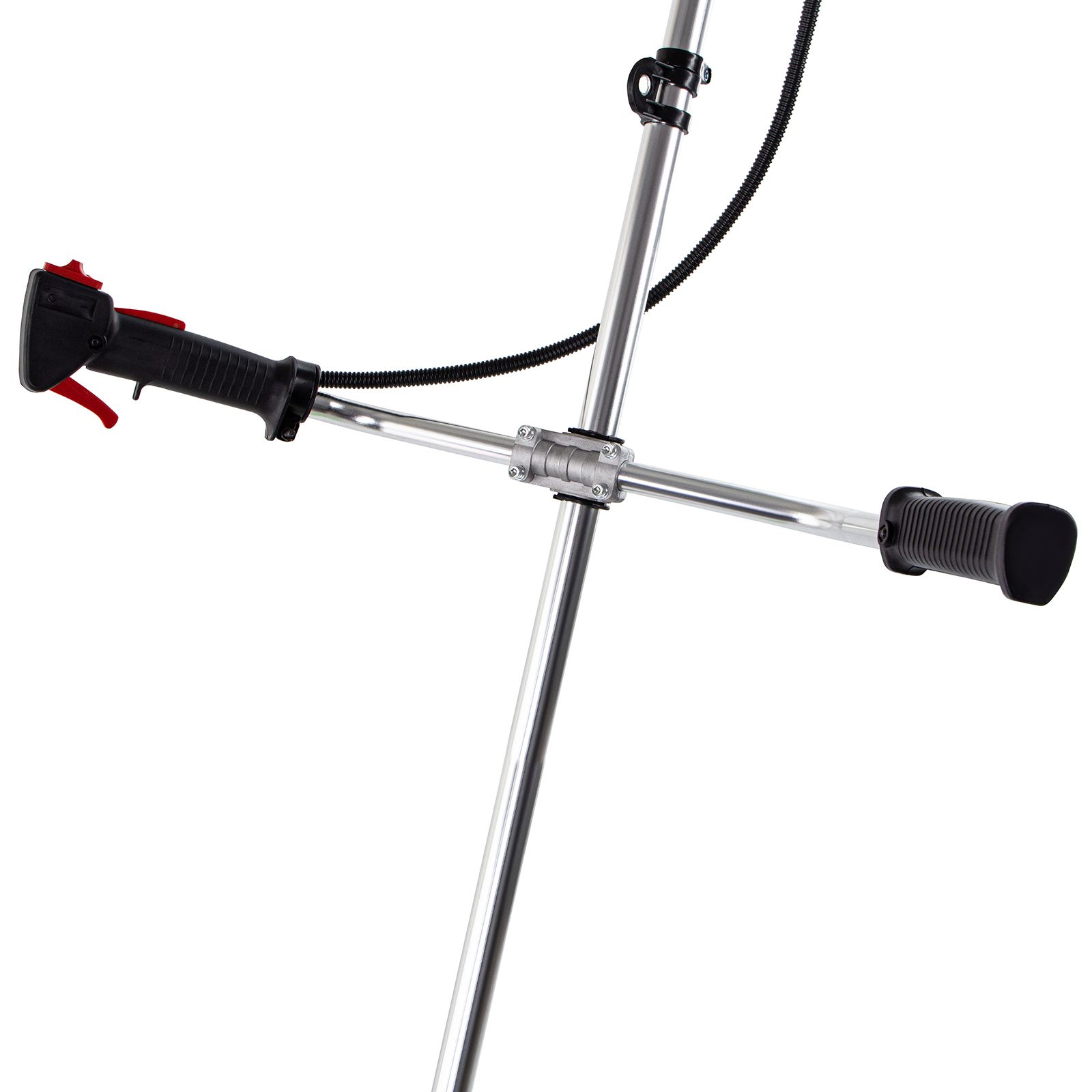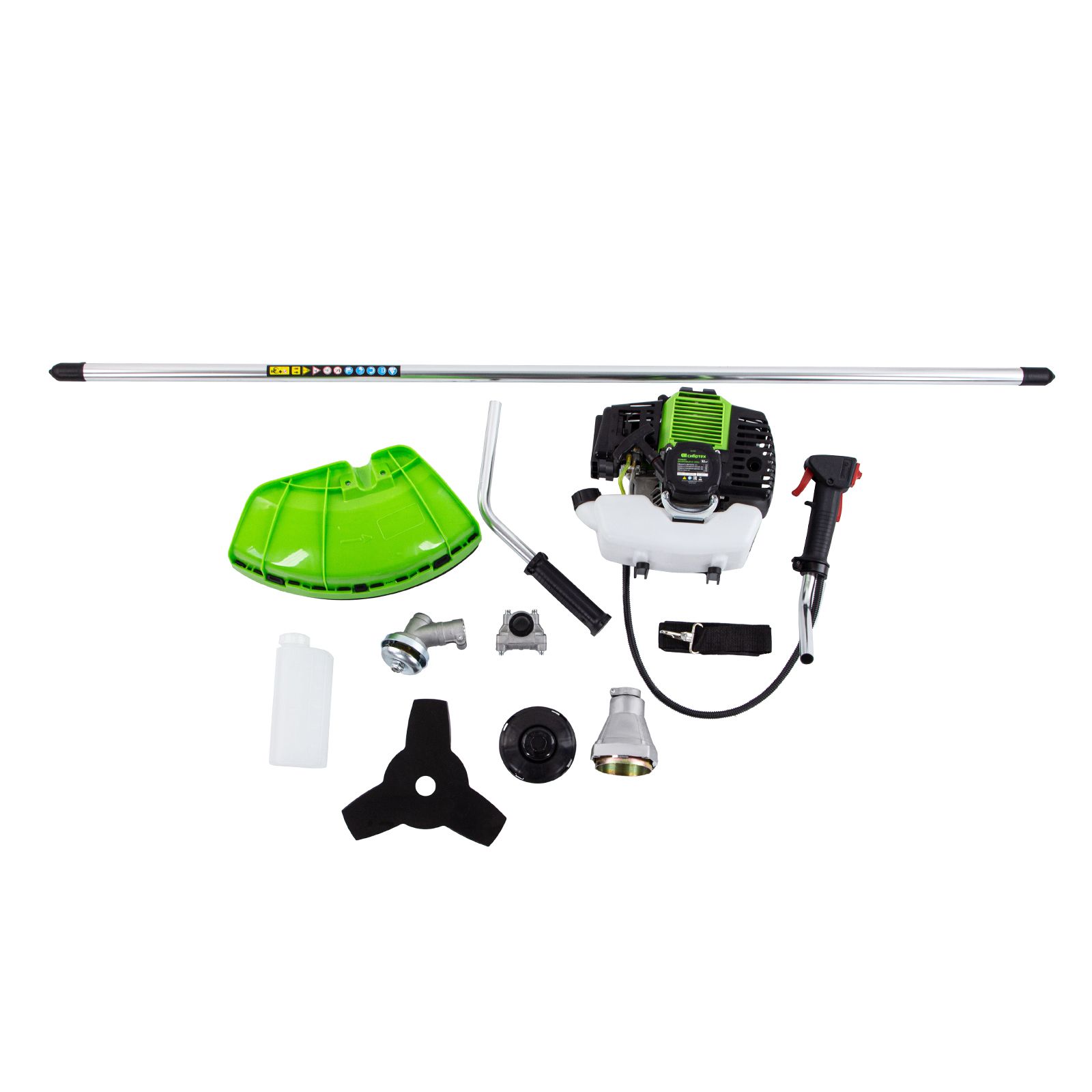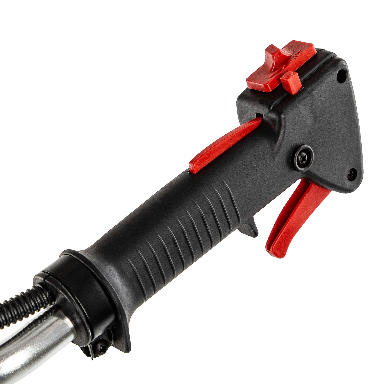 - Защита от летящей травы и веток — на штанге надежно закреплен прочный пластиковый кожух.