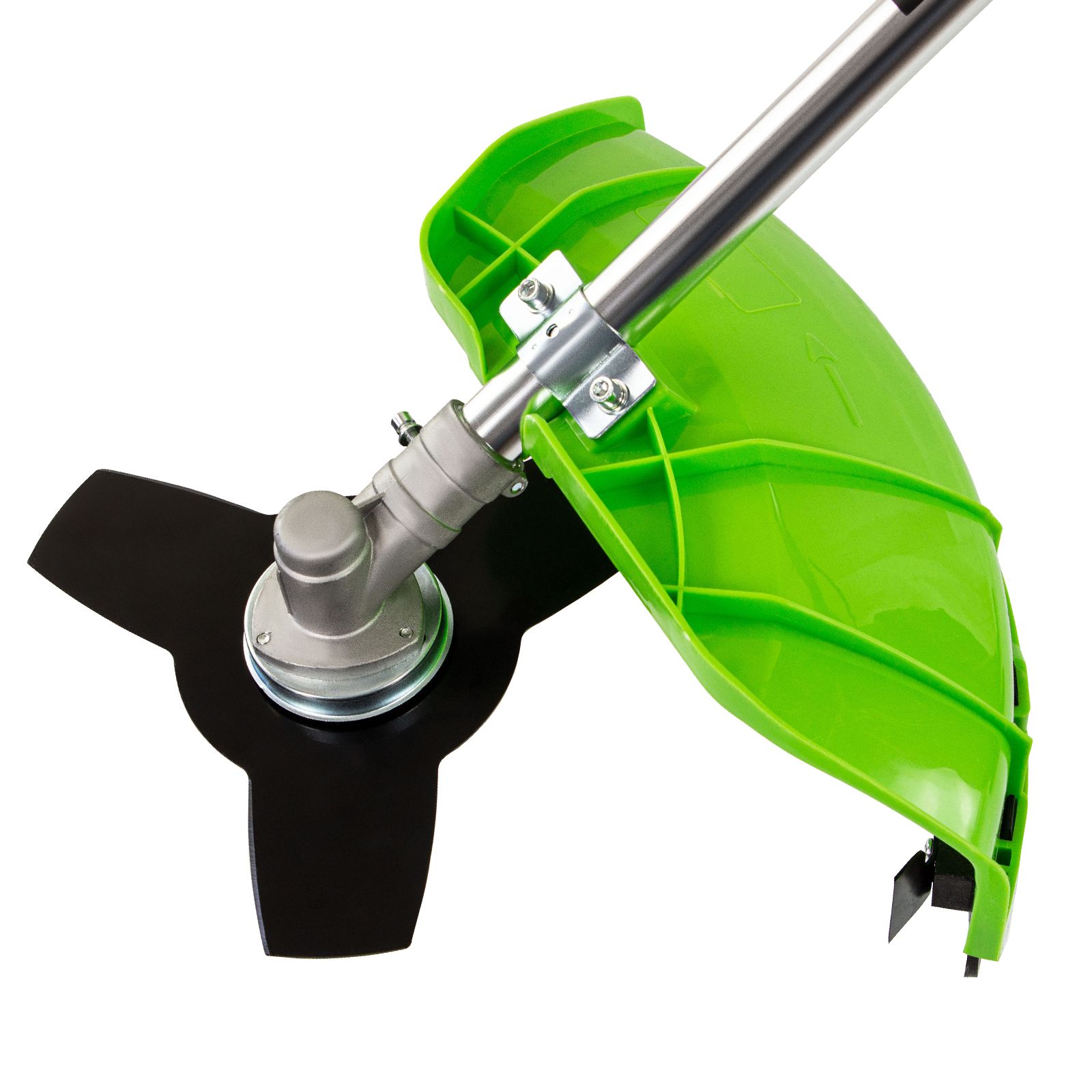 - Защита от летящей травы и камней — режущий элемент со стороны пользователя закрыт прочным пластиковым кожухом.