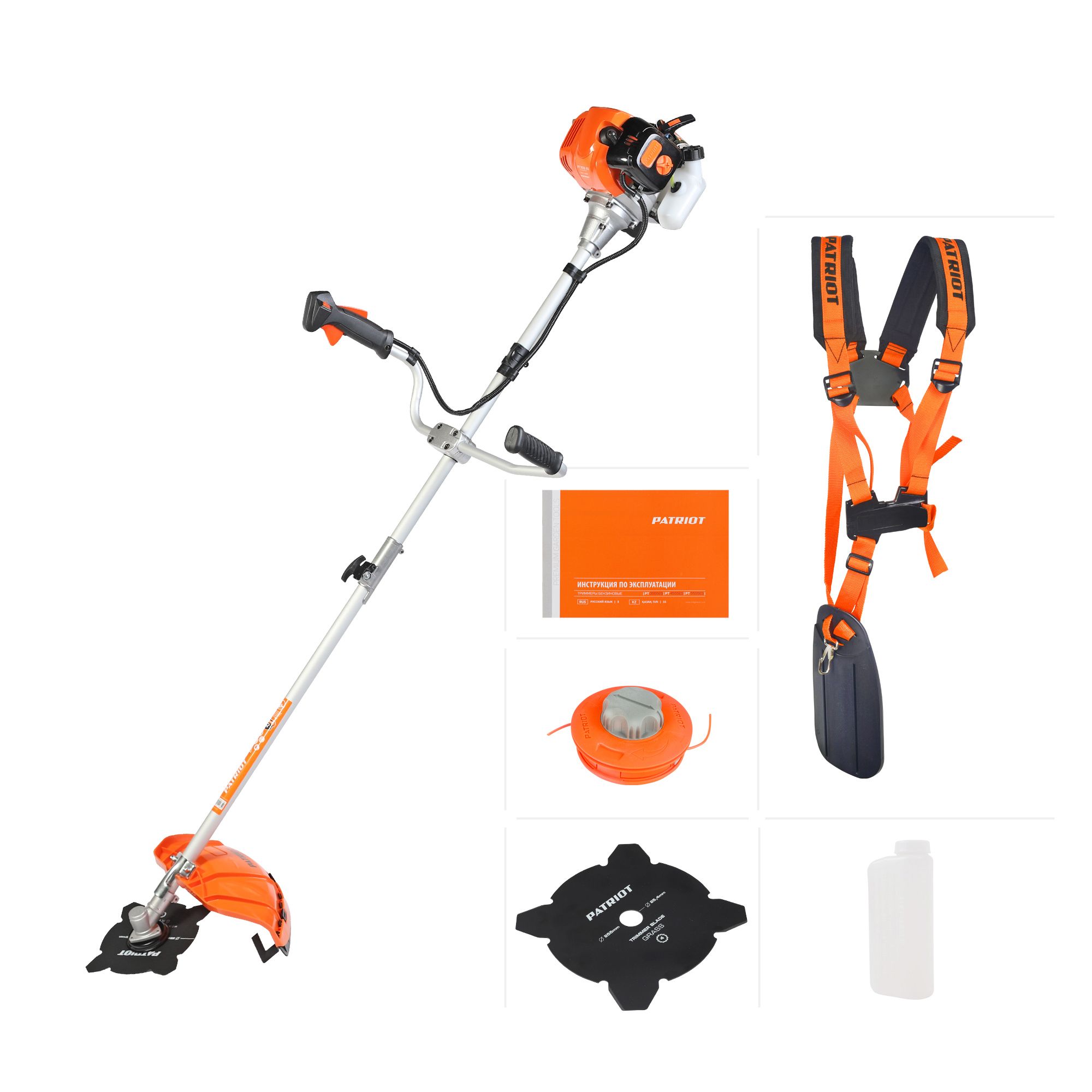 В комплекте поставки — специальный 4х-лопастной нож для борьбы с зарослями борщевика и амброзии. Специальная конструкция ножа предотвращает разлет ядовитого сока и частей растений.