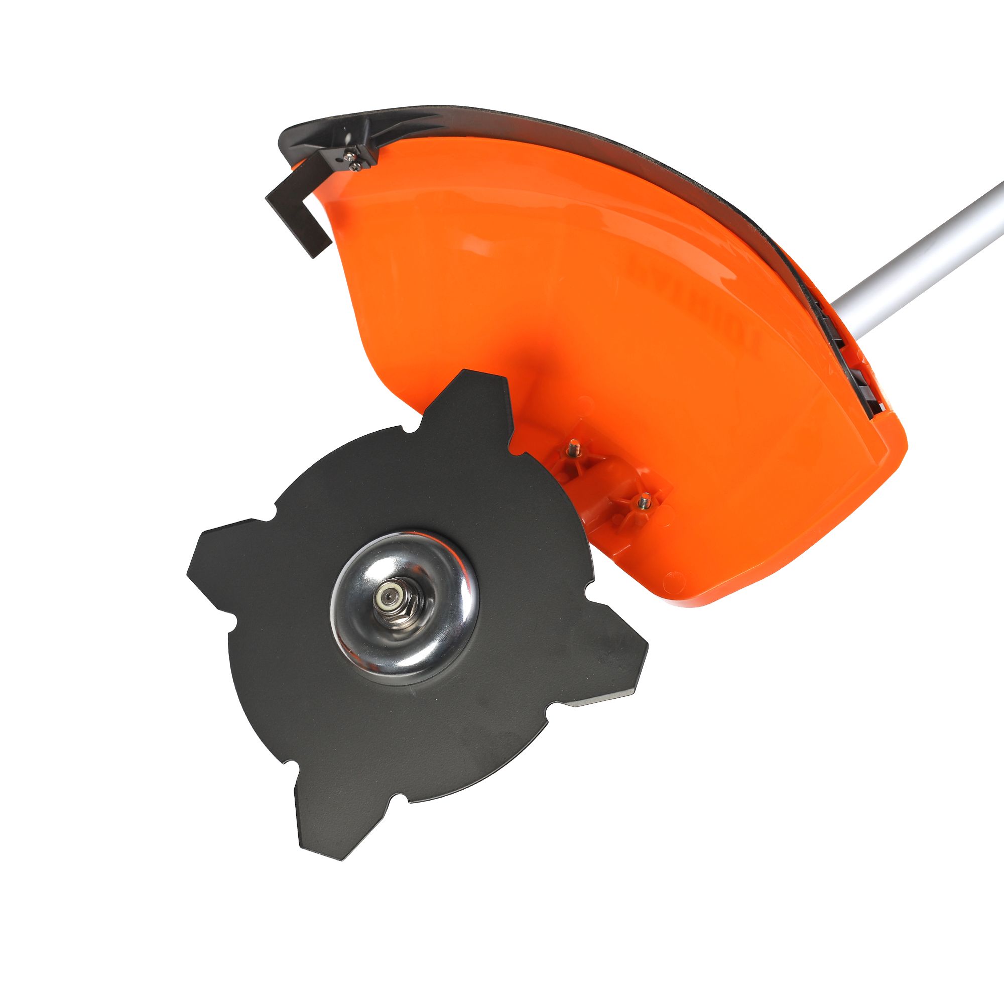 В комплекте поставки — специальный 4х-лопастной нож для борьбы с зарослями борщевика и амброзии. Специальная конструкция ножа предотвращает разлет ядовитого сока и частей растений.