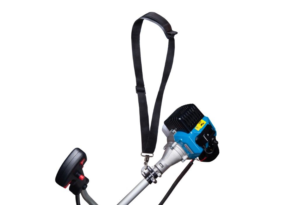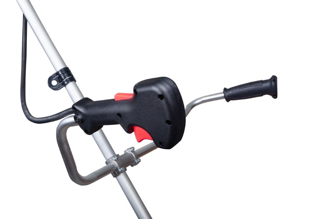 Триммер оснащен возвратным механизмом стартера, который автоматически возвращает его в пусковое положение, обеспечивая быстрое последующее включение. Двигатель имеет хонигованную поршневую группу с покрытием из твёрдого хрома, что гарантирует отличную сбалансированность и стабильную работу при любых углах наклона без потери мощности, а также минимальный расход топлива.