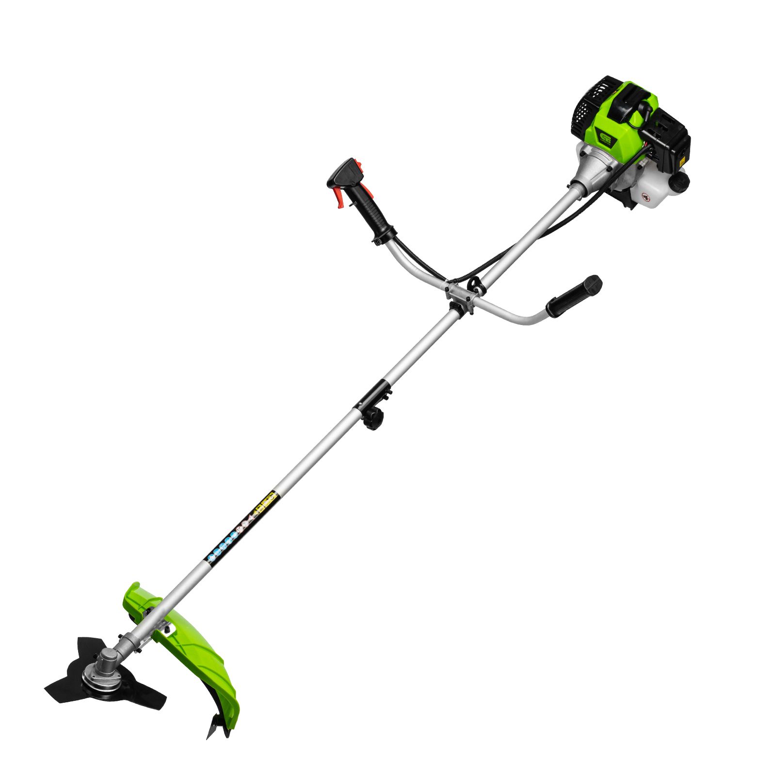 - Полуавтоматическая подача лески — достаточно слегка ударить кнопкой катушки о землю, не останавливая двигатель.