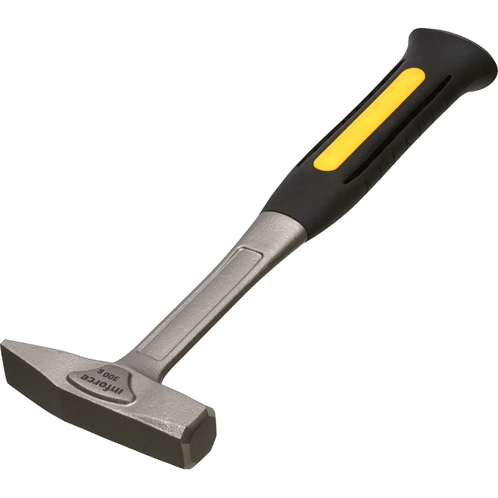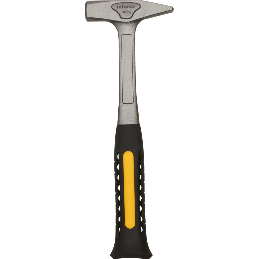Слесарный цельнокованый молоток 300 г Inforce 06-16-12 обладает высокой прочностью. Инструмент полностью выполнен из стали марки 55. Рукоять не скользит в ладонях и обеспечивает надежный хват за счет использования термопластичной резины.