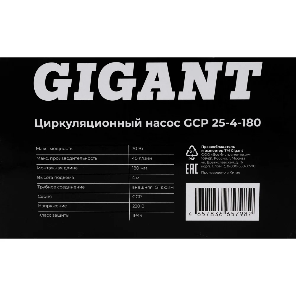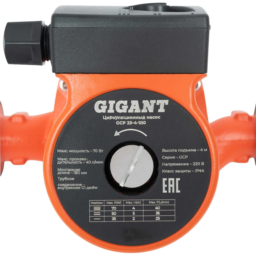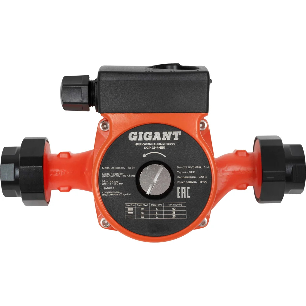 Циркуляционный насос Gigant GCP 25-4-180 изготовлен из качественных материалов, что гарантирует длительную, бесперебойную эксплуатацию. Имеет трехступенчатый переключатель скоростей. Обеспечивает циркуляцию воды в системах отопления. Оснащен защитой от перегрева. Максимальная допустимая температура воды составляет 110 градусов.