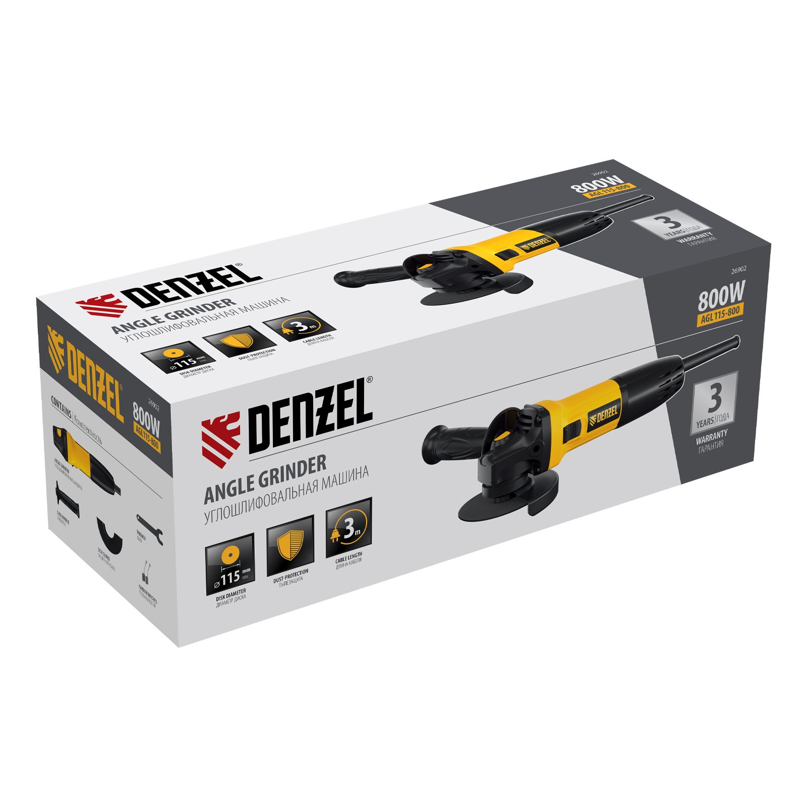 Угловая шлифовальная машина Denzel AGL115-800 мощностью 800 Вт поддерживает частоту вращения шпинделя 11000 об/мин и совместима с оснасткой диаметром 115 мм. Используется для резки, зачистки и шлифования металлических заготовок при помощи абразивных, отрезных кругов и проволочных щеток. Эффективная система пылезащиты лабиринтного типа предохраняет двигатель от поломки в результате обработки бетона, камня и кирпича. Машина рекомендована для решения бытовых задач.