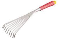 Эргономичная рукоятка, выполненная из ударопрочного пластика, имеет ребристый рельеф, что обеспечивает надежный и комфортный захват. Размер грабелек составляет 420 мм, что позволяет использовать их как для мелких, так и для крупных работ.