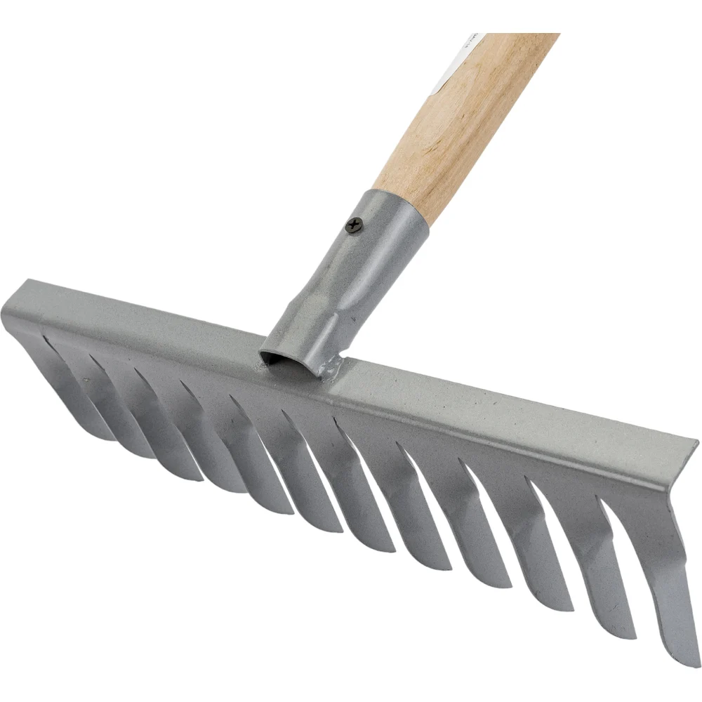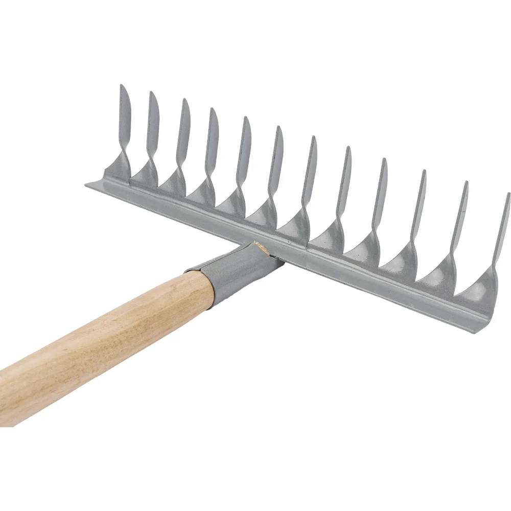 Витые грабли Gigant 12-зубые, порошковая окраска, с черенком GAV-16 используются для выравнивания грунта, а также очистки садовых участков от различного мусора, скошенной травы и опавших листьев. Грабли изготовлены из прочной стали. Порошковое покрытие защищает инструмент от коррозии. Широкие зубья надежно удерживают собранный мусор, позволяя убрать территорию за один проход. Грабли имеют деревянный черенок, благодаря чему инструмент полностью готов к использованию