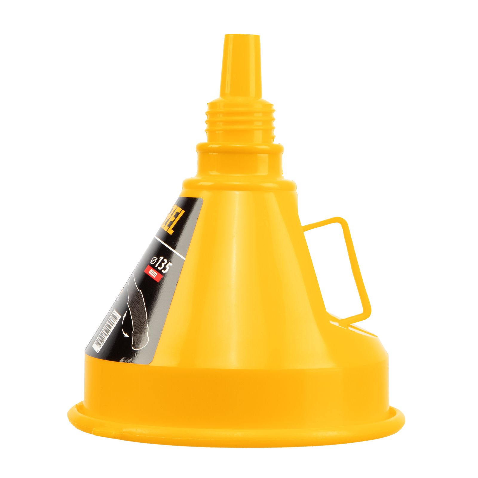 Пластиковая воронка Denzel 537210 диаметром 135 мм, с металлическим сетчатым фильтром, «непроливайкой» и гибким наконечником, позволяет переливать топливо, антифриз, масло и другие горюче-смазочные материалы. Будет полезна автовладельцам: с ее помощью процедура происходит гораздо быстрее и без риска испачкаться. Воронка выполнена из маслобензостойкого материала.