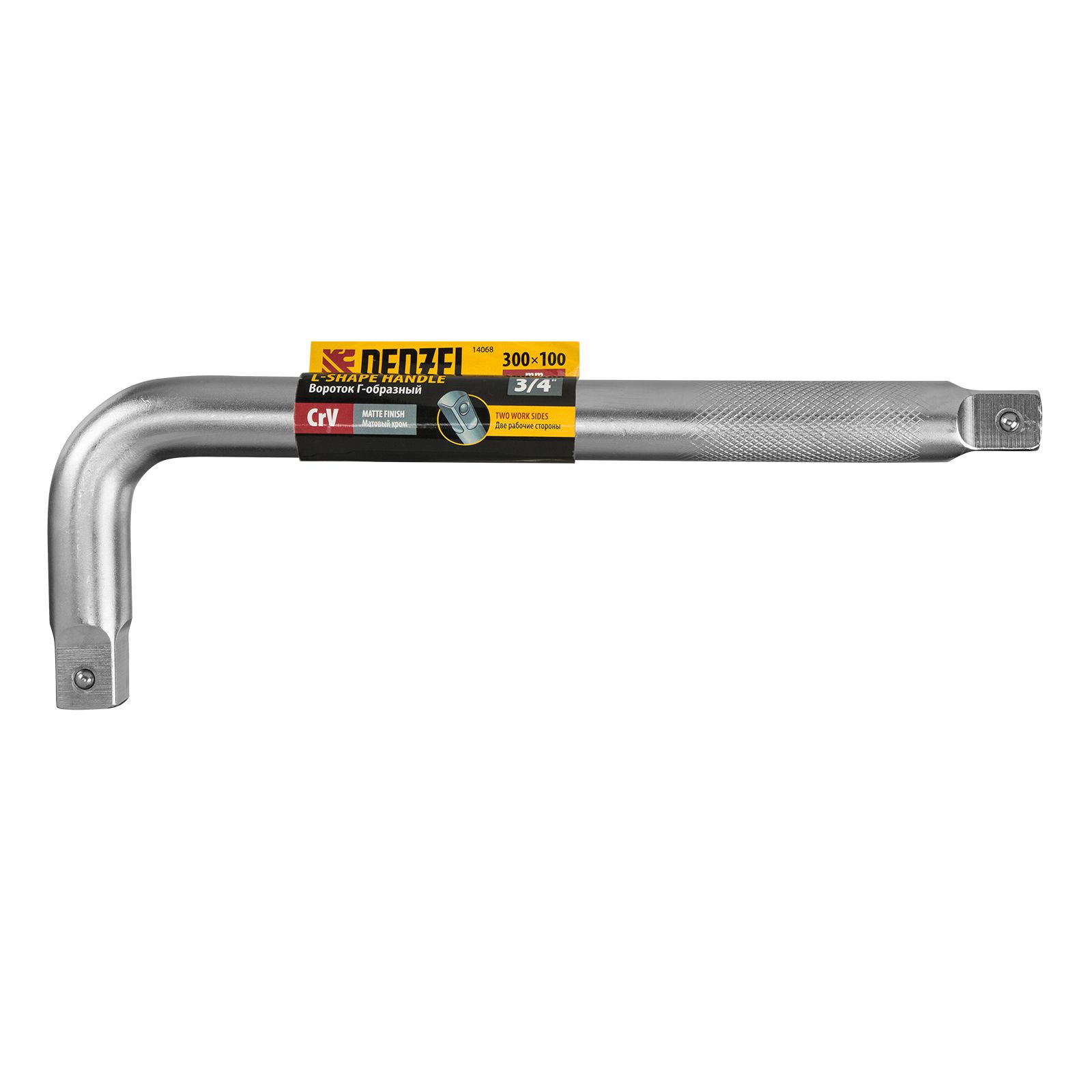 Г-образный вороток Denzel 14068 из стали CrV, размером 300 х 100 мм, с присоединительным квадратом 3/4", с покрытием «матовый хром», предназначен для ручного монтажа и демонтажа гаек, болтов и другого резьбового крепежа с помощью торцевых головок. Может использоваться в бытовой и профессиональной сфере: для ремонта велосипедов, автомобилей, станков.
