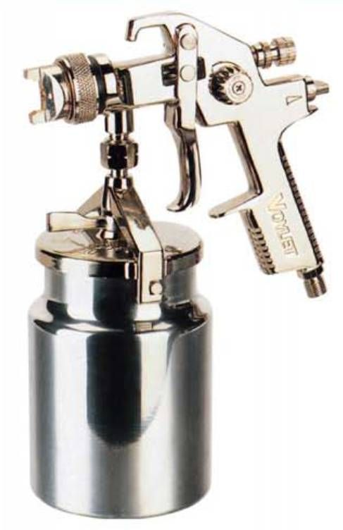 Оснащён системой распыления: HVLP (High Volume Low Pressure) – имеет высокий объем и низкое давление.