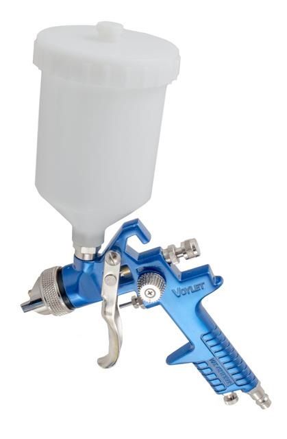 Оснащён системой распыления: HVLP (High Volume Low Pressure) – имеет высокий объем и низкое давление.
