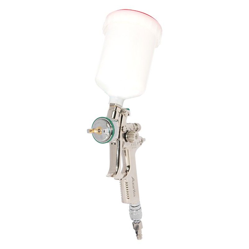 Оснащён системой распыления: HVLP (High Volume Low Pressure) – имеет высокий объем и низкое давление.