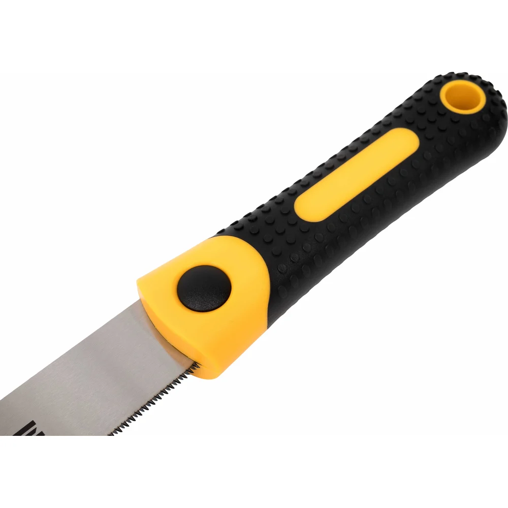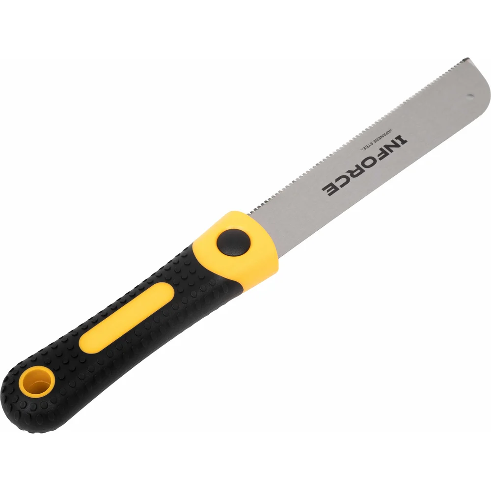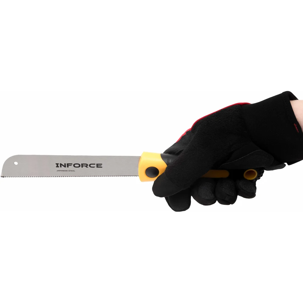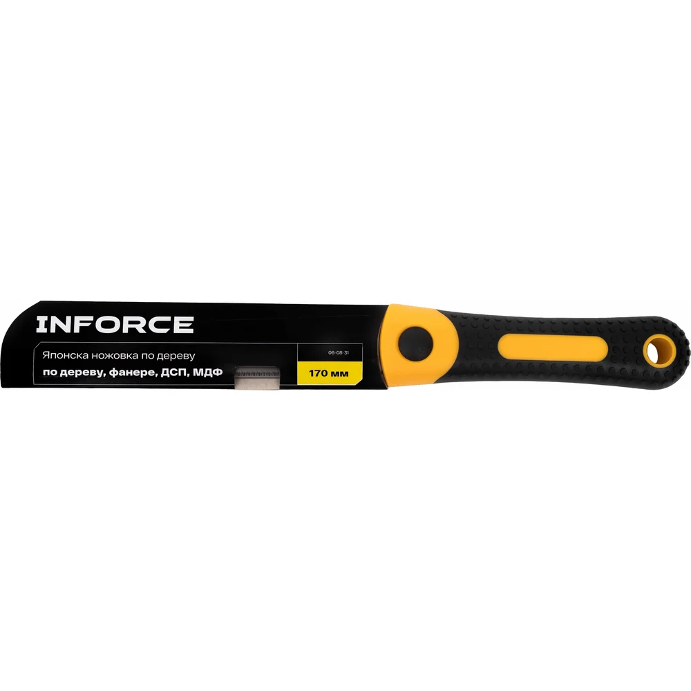 Японская ножовка по дереву Inforce 22 170 мм 06-08-31 представляет собой профессиональный инструмент, предназначенный для работы с различными материалами, такими как дерево, фанера, ДСП и МДФ. Изготовленная из высококачественной стали SK5, ножовка обеспечивает надежность и долговечность в использовании. Длина режущего полотна составляет 170 мм, что позволяет выполнять точные и аккуратные распилы. Особенностью данной модели является наличие 3D зубьев с плотностью 22 зуба на дюйм, что способствует эффективному и быстрому распилу. Двухкомпонентная рукоять обеспечивает удобный и надежный захват, снижая усталость при длительной работе. Ножовка подходит для продольного распила, что расширяет ее функциональные возможности.