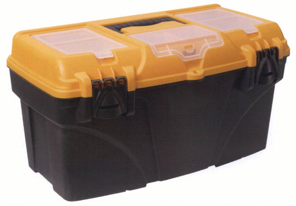 Ящики для инструмента являются незаменимым аксессуаром домашнего мастера и профессионала. Изготовлены из ударопрочного пластика и имеют внутреннюю вставку для мелкого инструмента. Прочная ручка позволяет уверенно переносить нагруженный ящик. Прочность корпуса достаточна для использования ящика в качестве подставки как для выполнения работ, требующих опоры, так и для использования в качестве ступеньки при работах на уровне выше человеческого роста.
