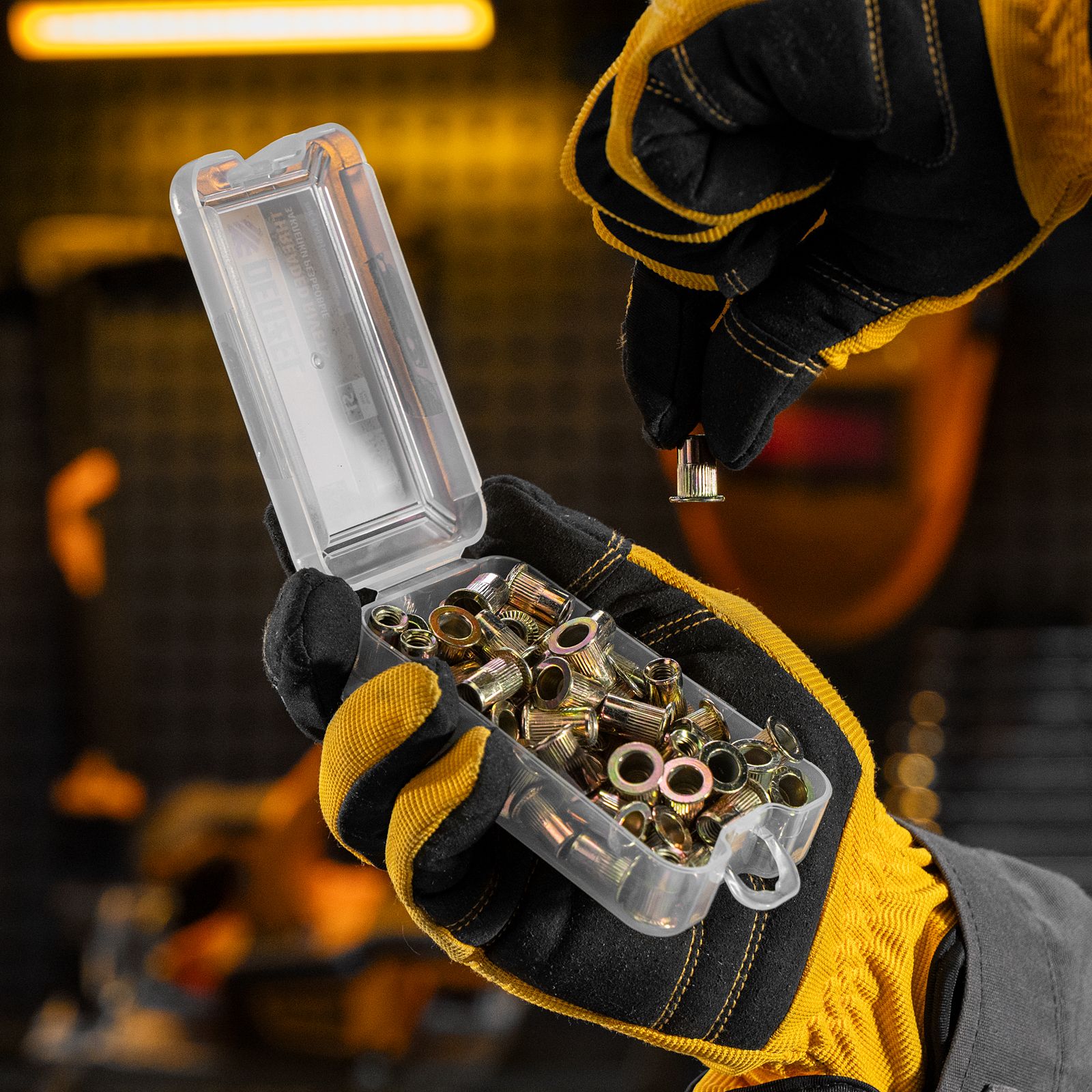 - Удобное хранение и транспортировка — заклепки поставляются в прочном пластиковом кейсе с защелкой.