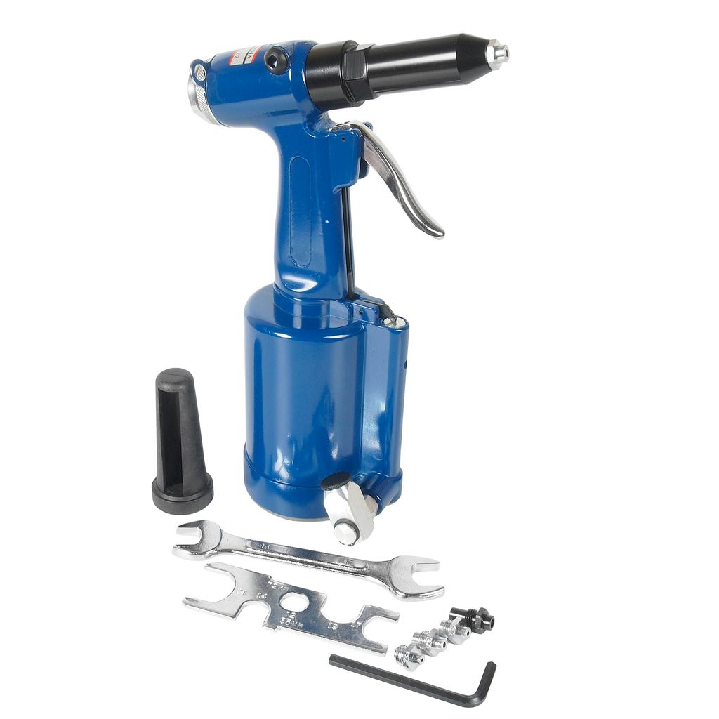 Пневматический заклепочник предназначен для работы с вытяжными заклепками из алюминия различных диаметров: 2.4 мм, 3.2 мм, 4.0 мм, 4.8 мм и 6.4 мм. Это идеальное решение для профессионалов и любителей, которым требуется надежный инструмент для быстрого и качественного соединения.