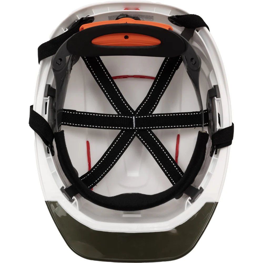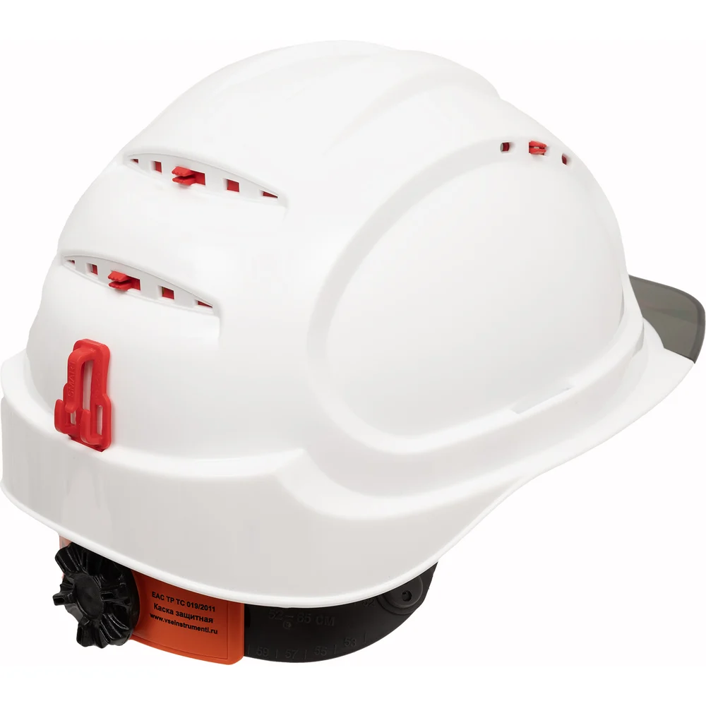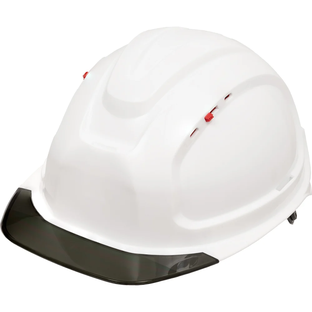 Защитная каска Gigant Alt Pro белая храповая регулировка c прозрачным серым козырьком GHAP-22 защищает голову пользователя от повреждений падающими предметами, от воздействия влаги, брызг металла, химических рисков. Область применения: погрузо-разгрузочные работы, машиностроение, монтаж и наладка оборудования, горно-добывающая промышленность, строительство и ЖКХ, металлургия, добыча и переработка нефти и газа, работы в зимний период и в IV климатическом поясе, работы в зонах с недостаточной освещенностью. Несущая лента внутренней оснастки имеет специальные крючки в затылочной части для крепления пелерины. 4-точечный подбородочный ремень крепится к корпусу каски при помощи карабинов, регулируется по длине при помощи пряжки, а для быстрого съема каски с головы пользователя установлена застежка.