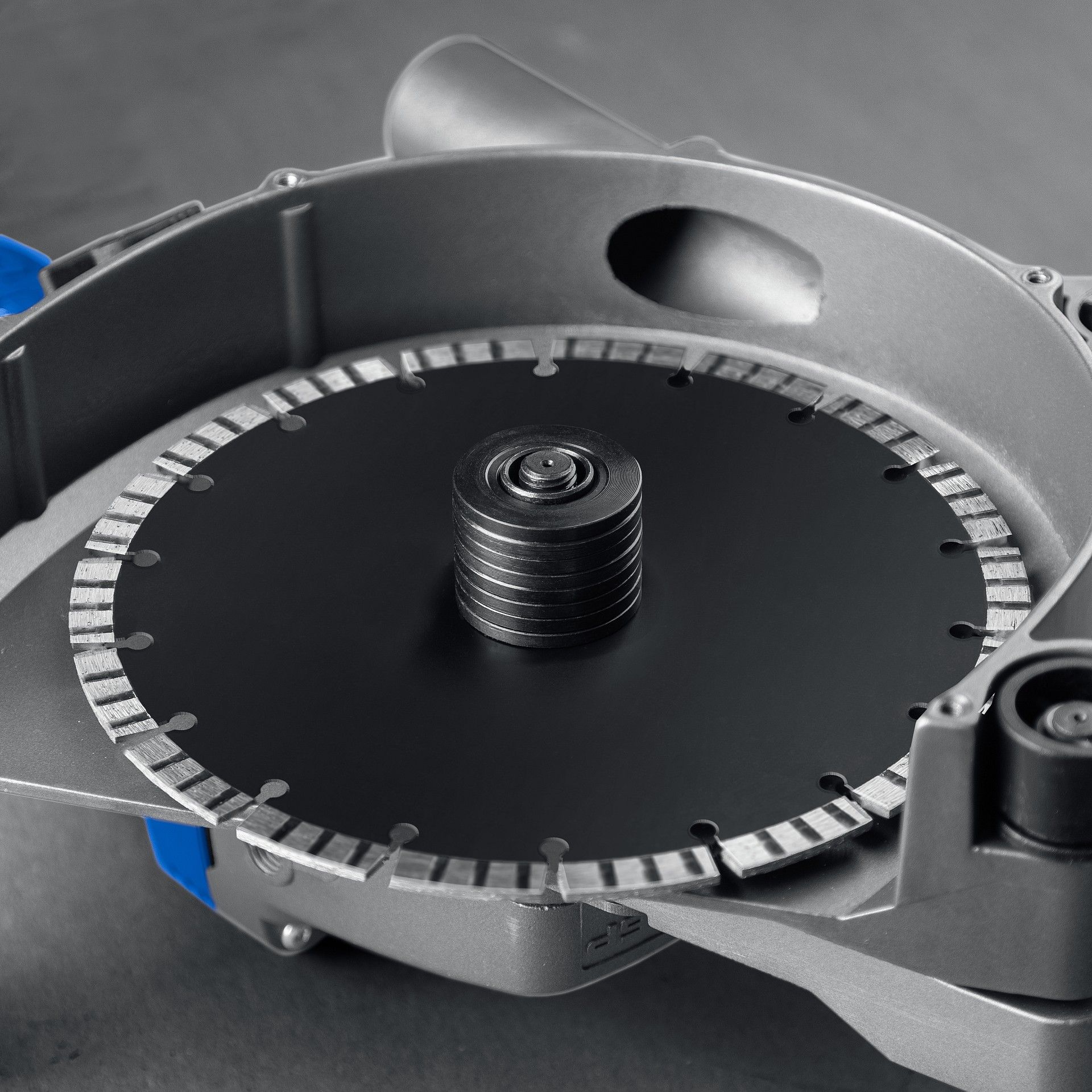 - Простая регулировка ширины штробы с шагом 4.3 мм с помощью наборных шайб