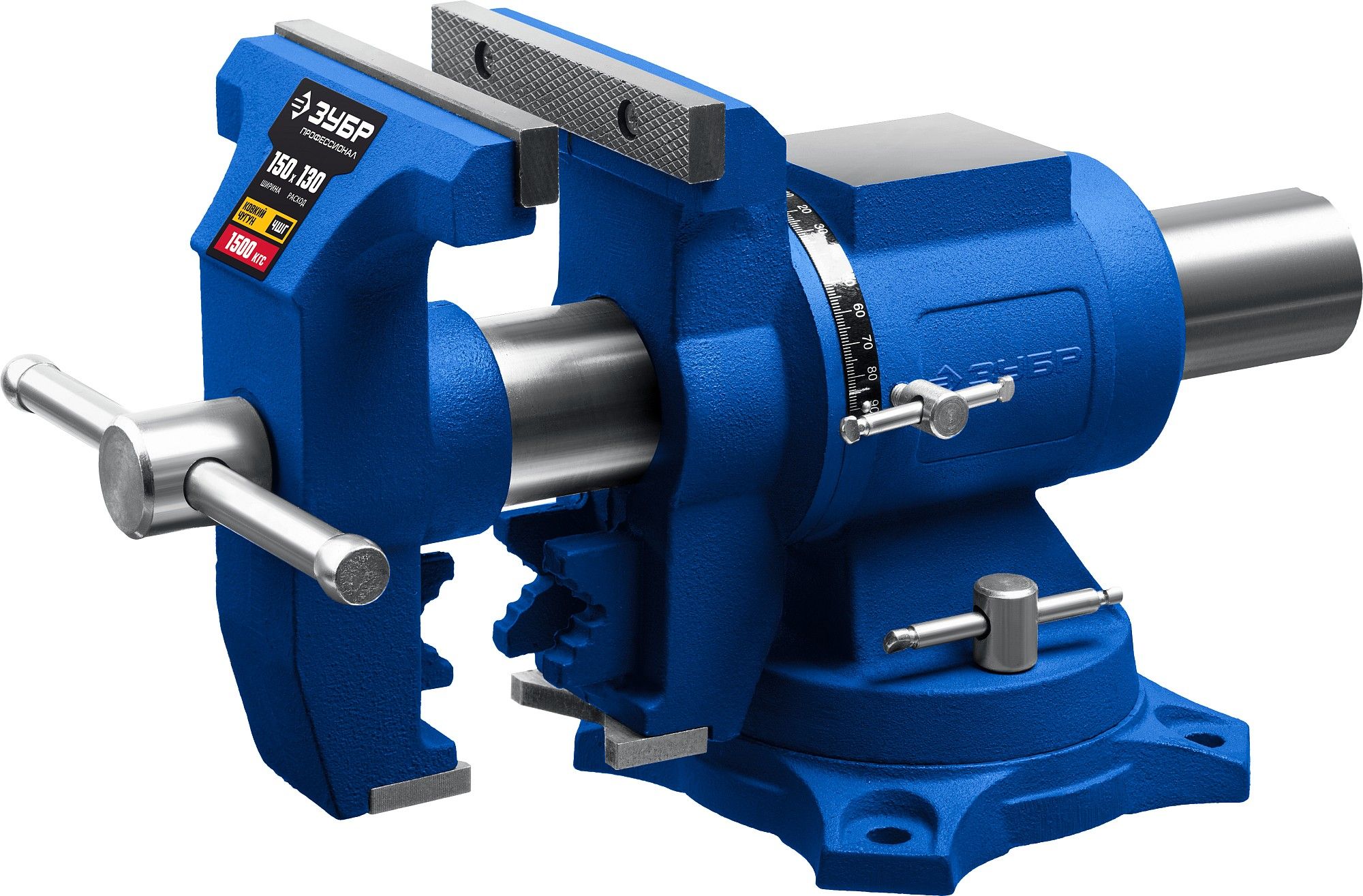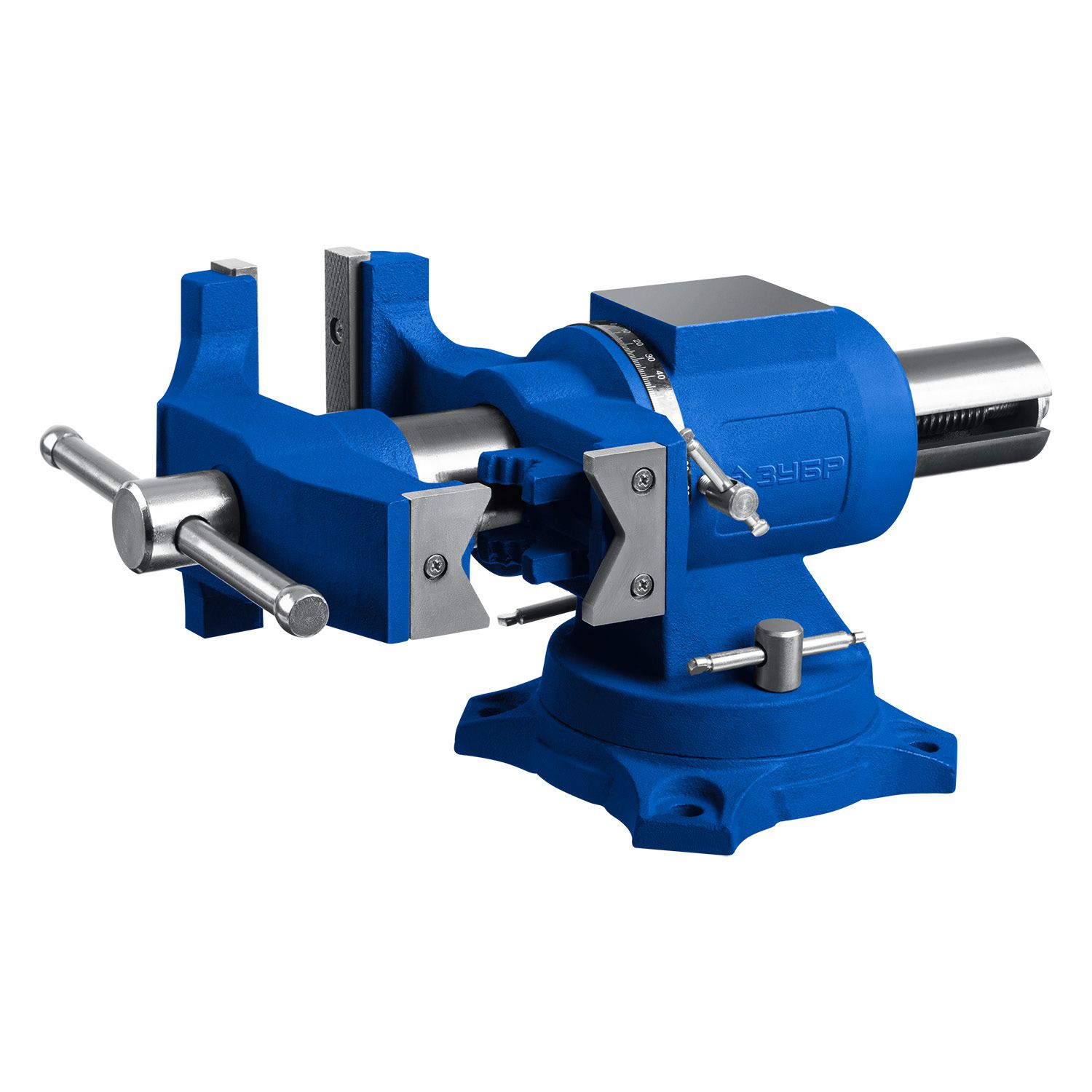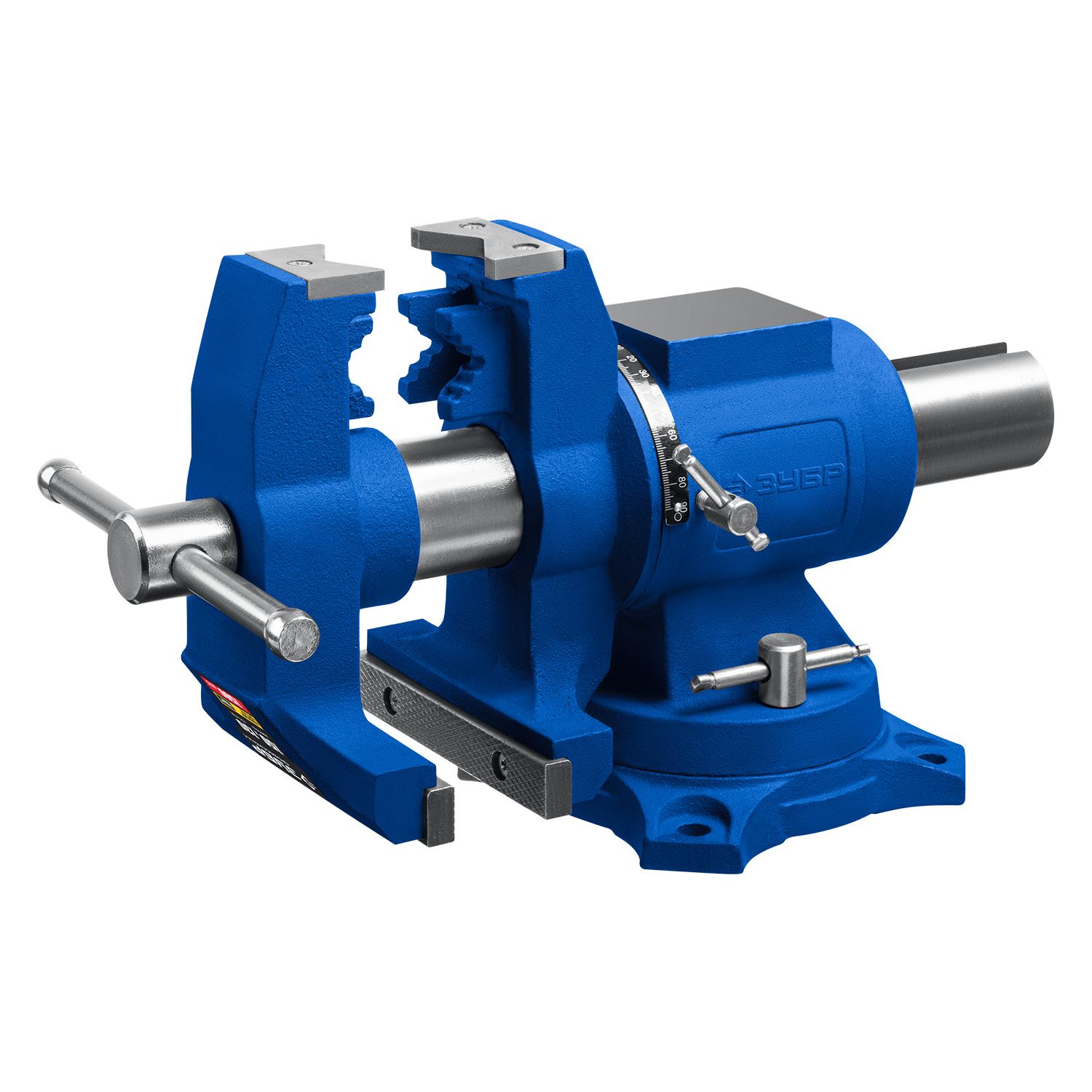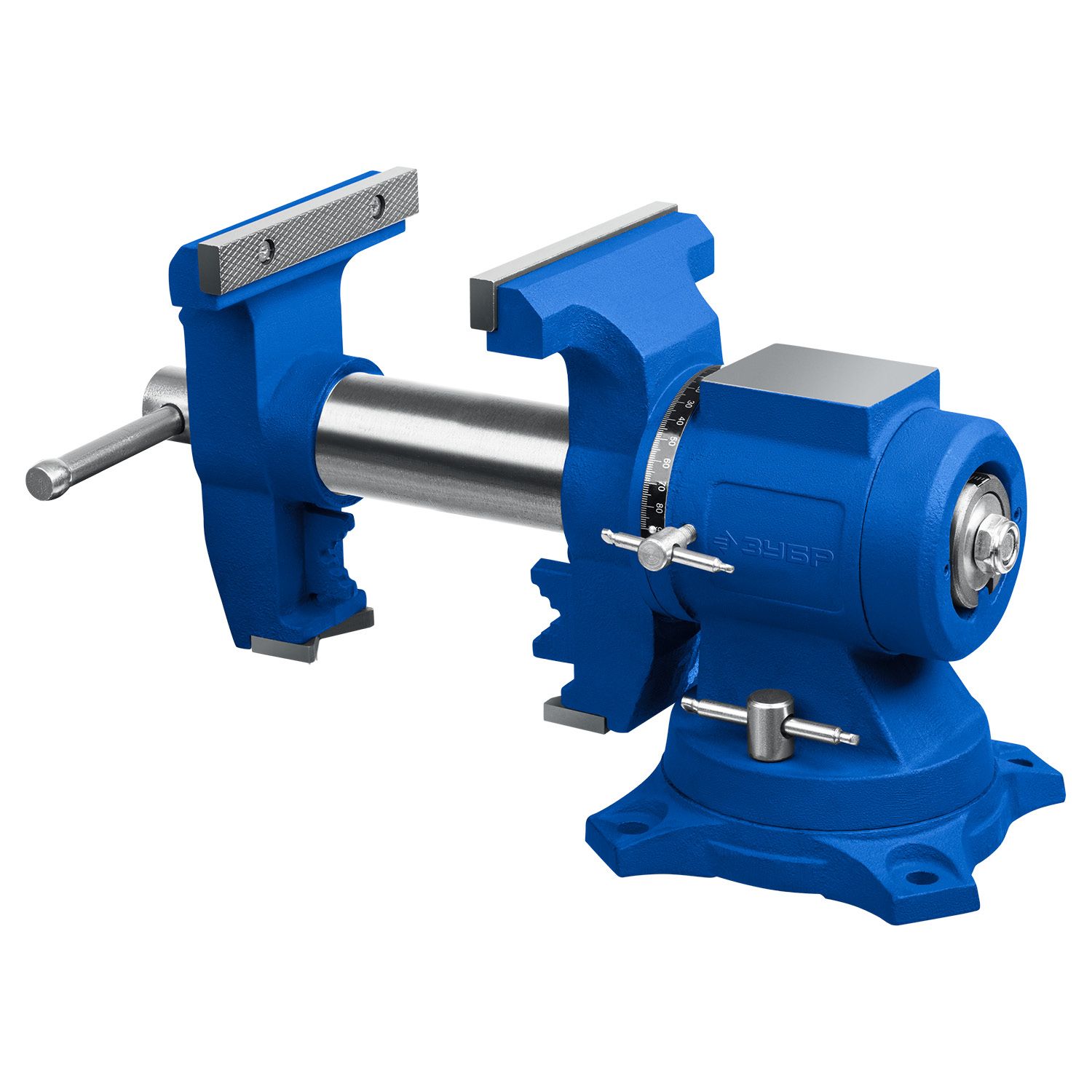 - Поворотное основание позволяет перемещать корпус тисков в горизонтальной плоскости на угол от 0 до 360 градусов