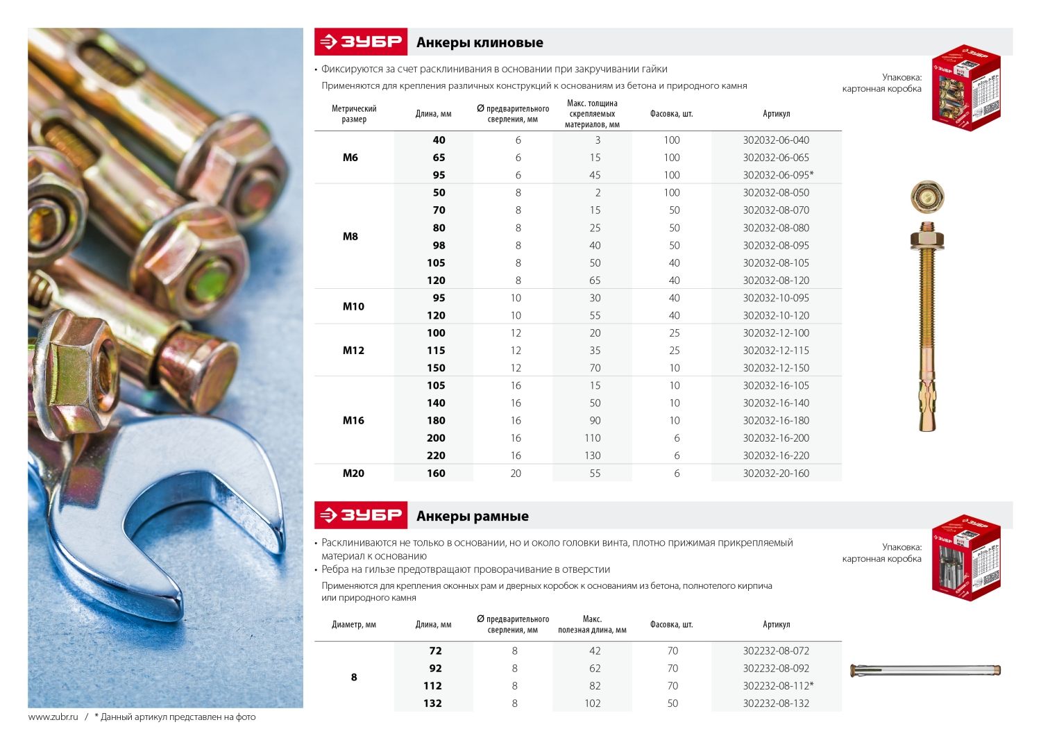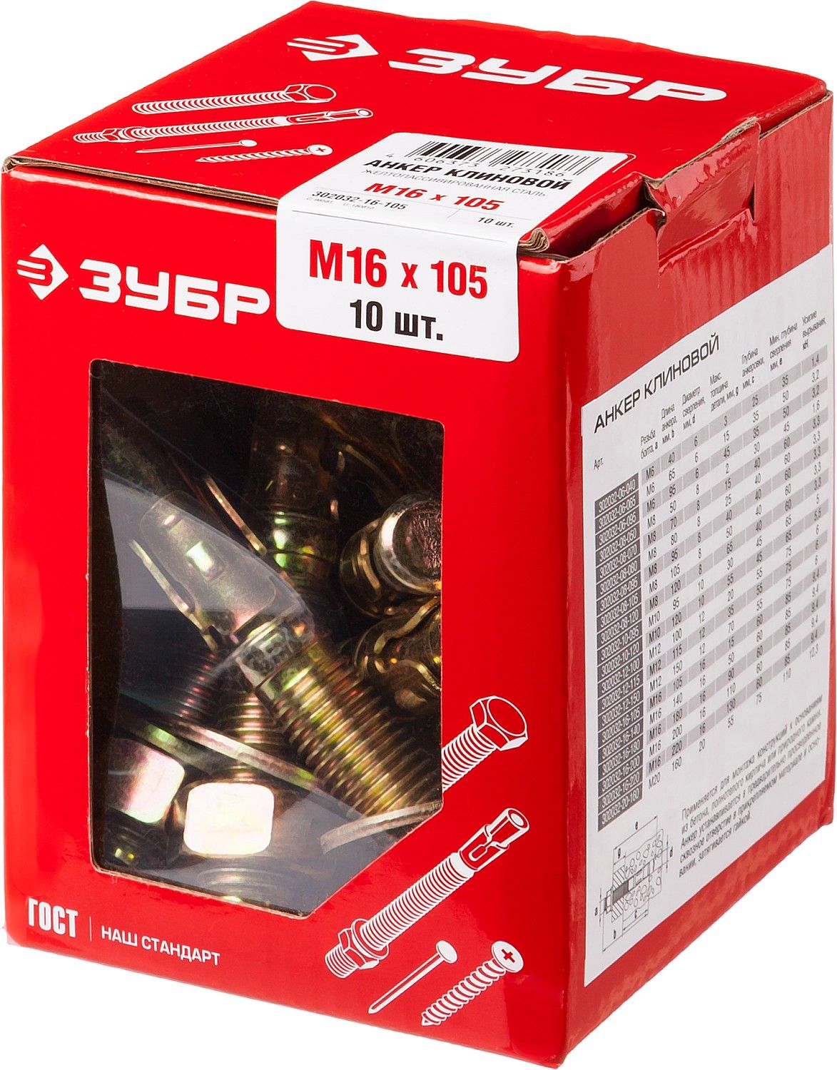ЗУБР М16 х 105 мм, 10 шт, клиновой анкер (302032-16-105)