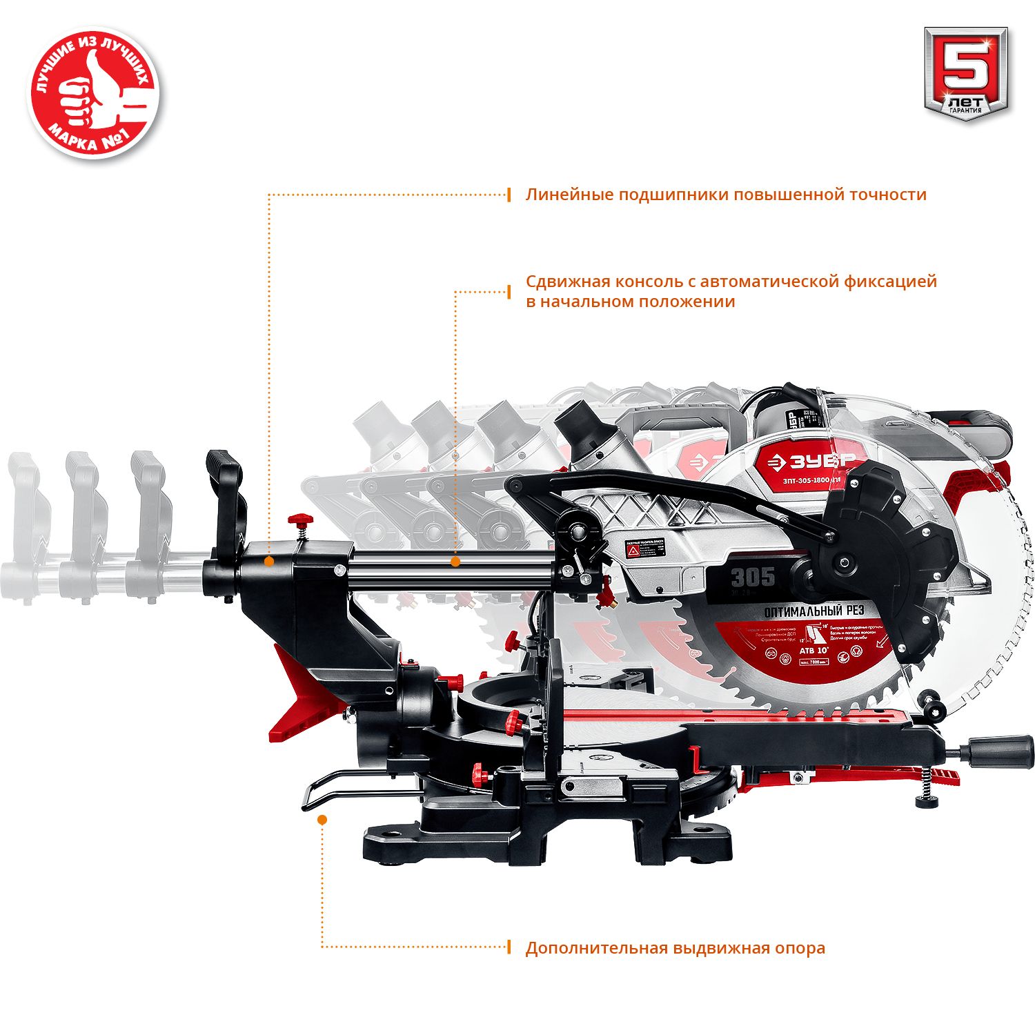 Мощная и функциональная пила с лёгкостью распиливает древесину, пластик и тонкостенный алюминий (при установке соответствующих дисков). Подвижная голова позволяет разрезать габаритные заготовки шириной до 340 мм Пила ЗУБР - достойный выбор и отличный помощник в работе