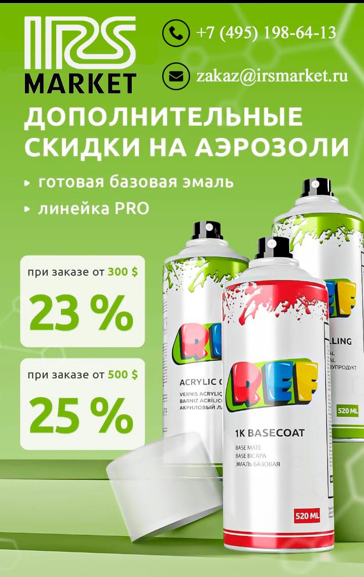 Акция! Уважаемые клиенты, рады вам сообщить о дополнительных скидках при заказе от 300/500$ на такие аэрозоли REF, как:
