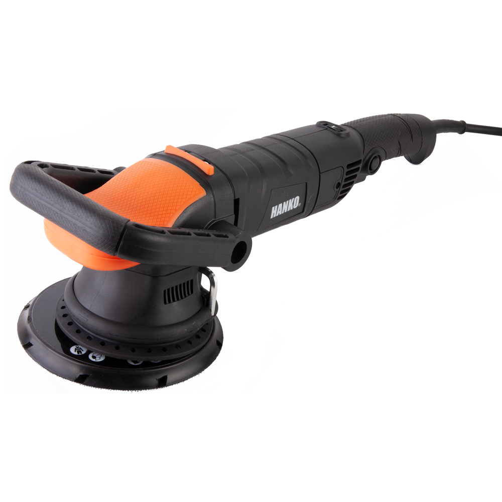 Угловая электрическая полировальная машинка с вращательно-орбитальным типом движения HANKO PL-21AL. Легкая, малогабаритная, идеально сбалансированная машинка с орбитальным ходом 21 мм и подошвой 150 мм идеально подойдет для полировки любой поверхности, даже большой площади. Прорезиненная передняя рукоятка и резиновые вставки в корпус инструмента обеспечивают комфортную работу оператора. Наличие 2-х ручек (скоба и боковая) дает возможность максимально настроить машинку для всех видов работ.