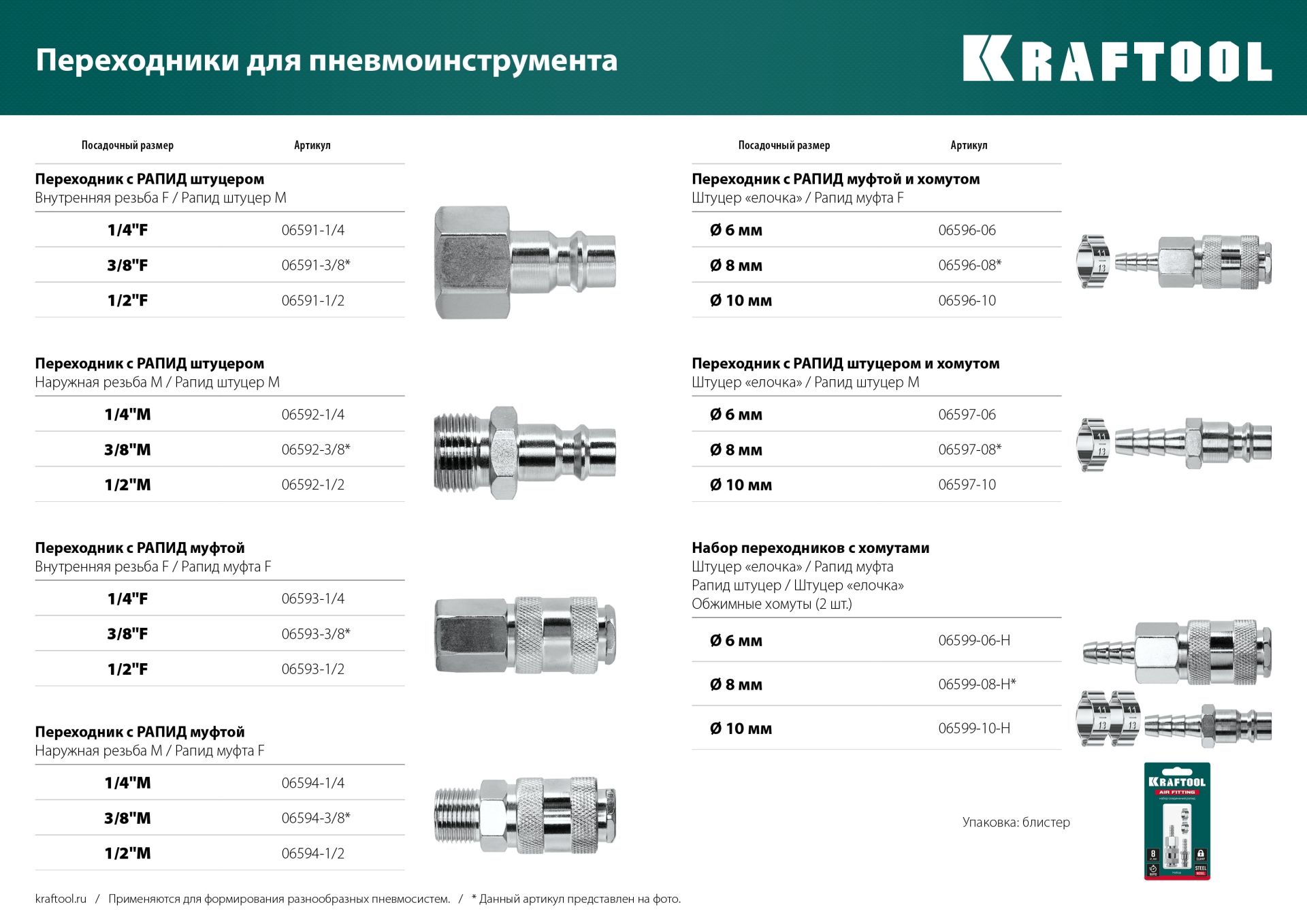 KRAFTOOL штуцер ″елочка″, 10 мм - рапид штуцер, с хомутом, переходник (06597-10)