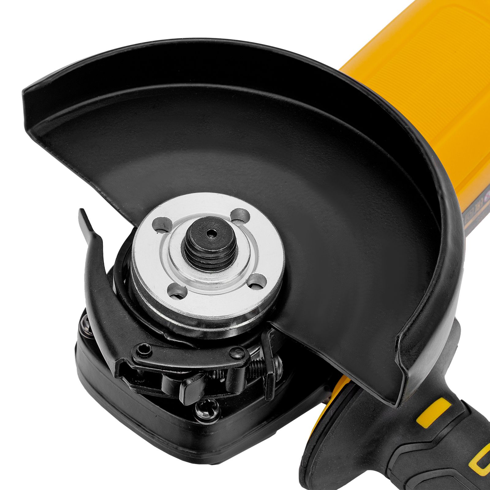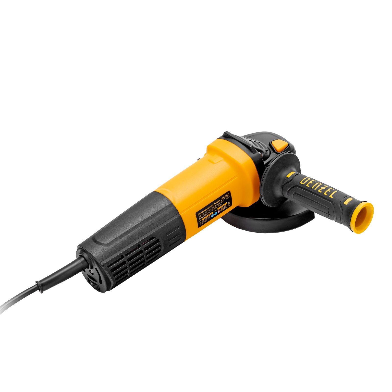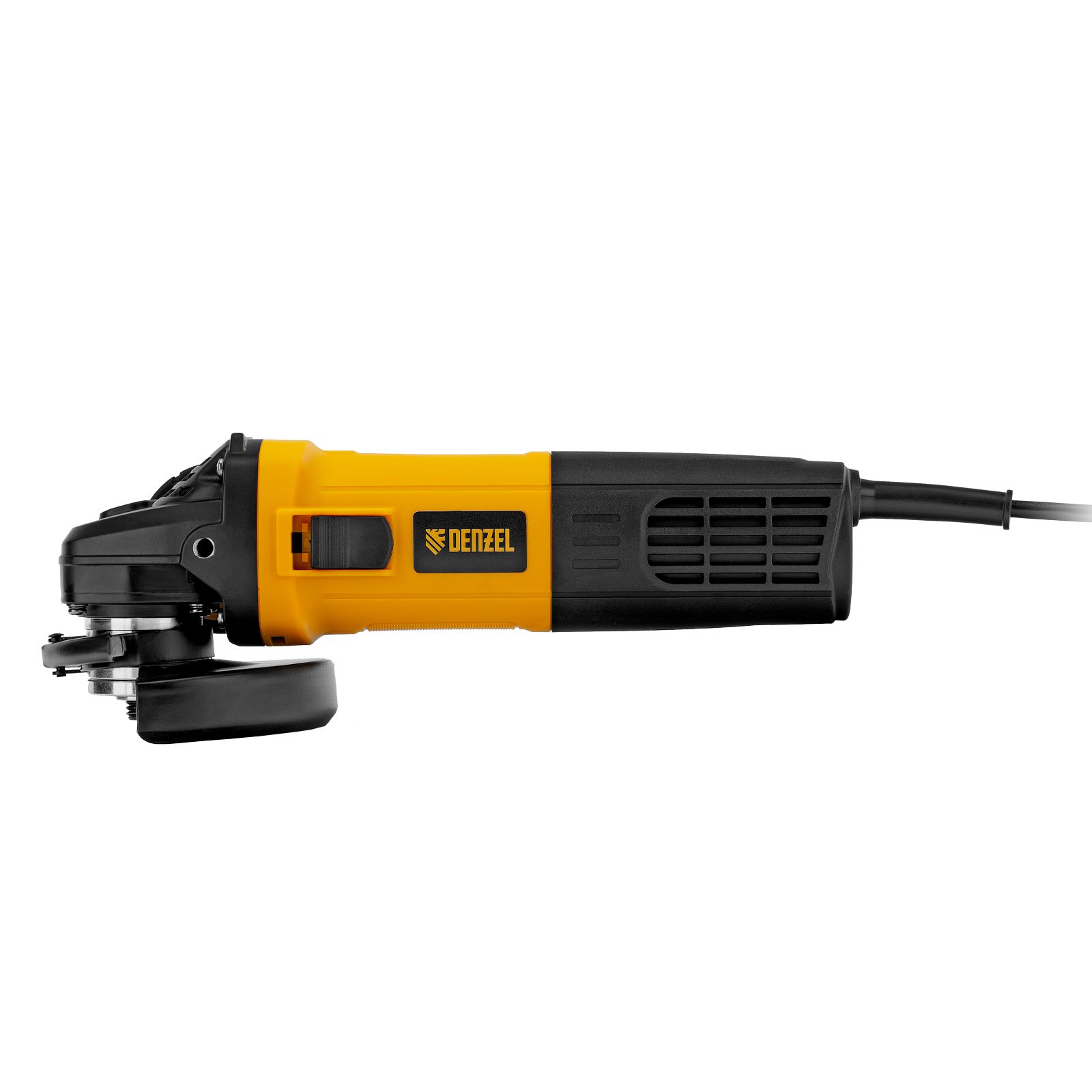 Угловая шлифовальная машина Denzel AG125-1500 26907 мощностью 1500 Вт совместима с оснасткой диаметром 125 мм, система электронной регулировки позволяет устанавливать оптимальную частоту вращения шпинделя в диапазоне 3000-11000 об/мин. Инструмент используется для резки и шлифовки различных материалов, а также при выполнении зачистных работ.
