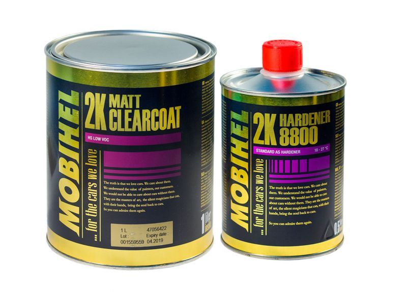 Для HS версии лак смешивается с отвердителем Mobihel 4100/4300/4500 в соотношении 3:1. Разбавление возможно с 2K разбавителем Mobihel 2100 / Mobihel 2300 до 30% по объему. Для MS версии необходим отвердитель Mobihel 1100/1300/1500 в пропорции 2:1, с возможностью разбавления 2K разбавителем Mobihel 2100 / Mobihel 2300 до 20% по объему.