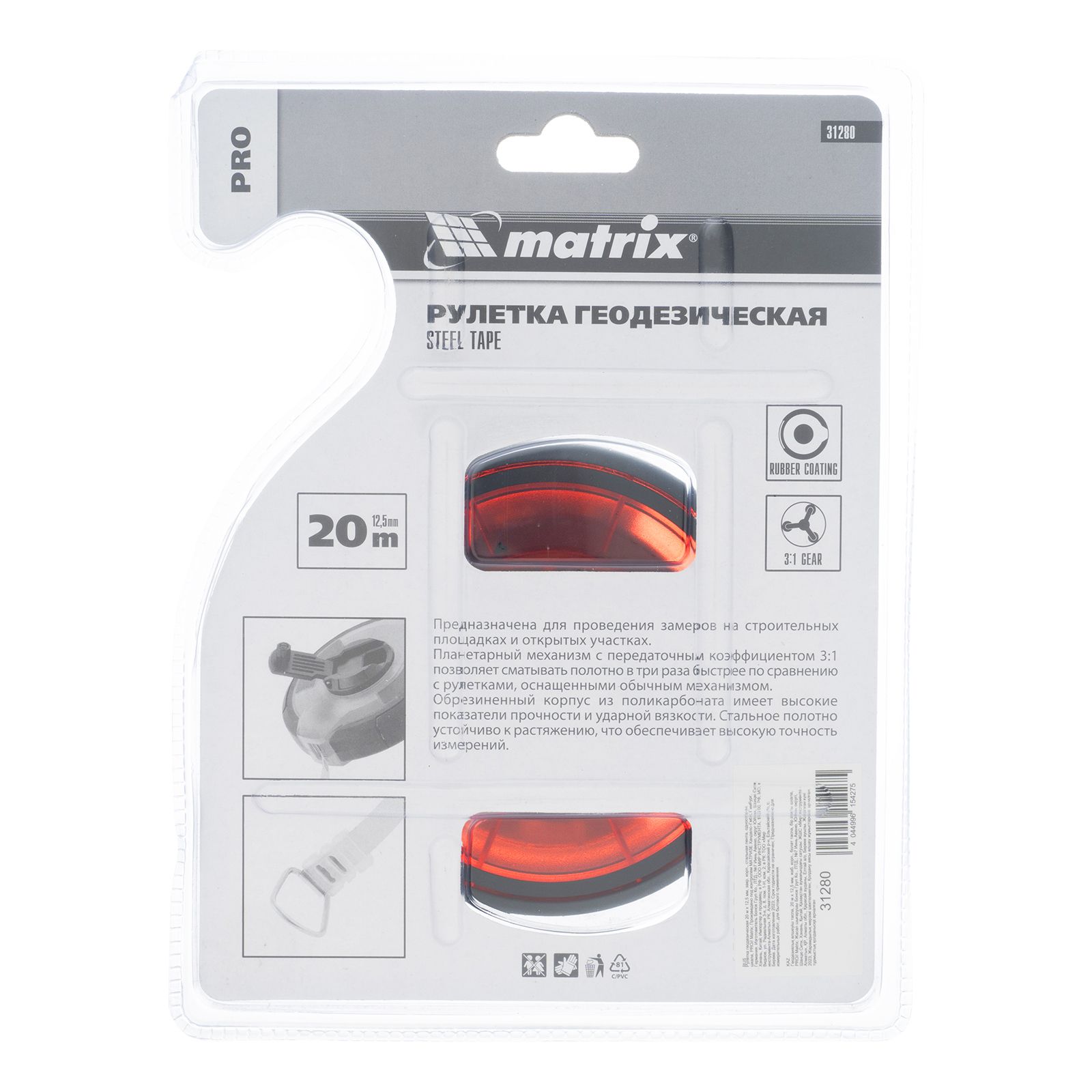 Геодезическая рулетка Matrix PRO 31280 в закрытом корпусе, со стальной лентой длиной 20 м и шириной 12,5 мм, с односторонней шкалой, применяется для проведения замеров на открытых участках. Рулетка оснащена кольцом-зацепом для надежной фиксации измерительной ленты на объекте. Пригодится во время строительных работ, обмеров садовых участков и дорог, обустройства территории.