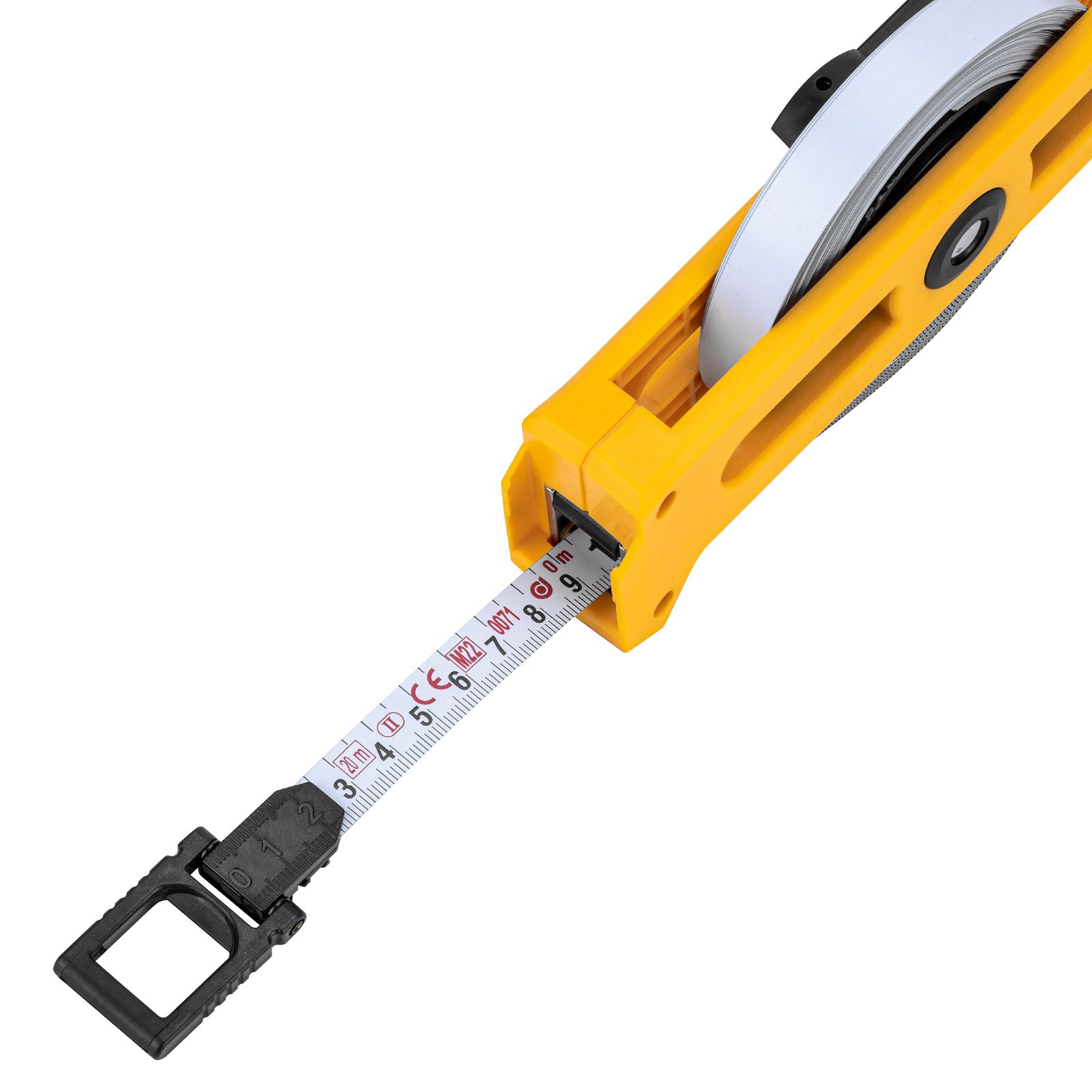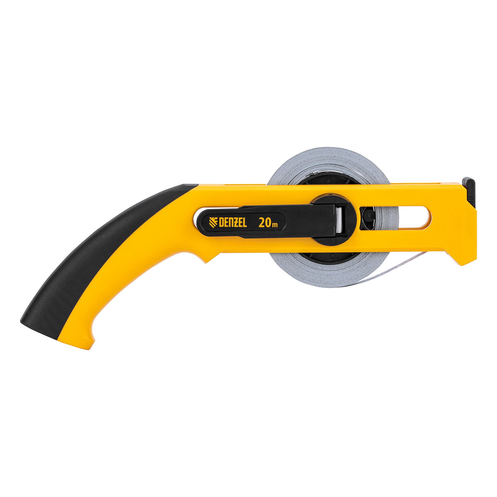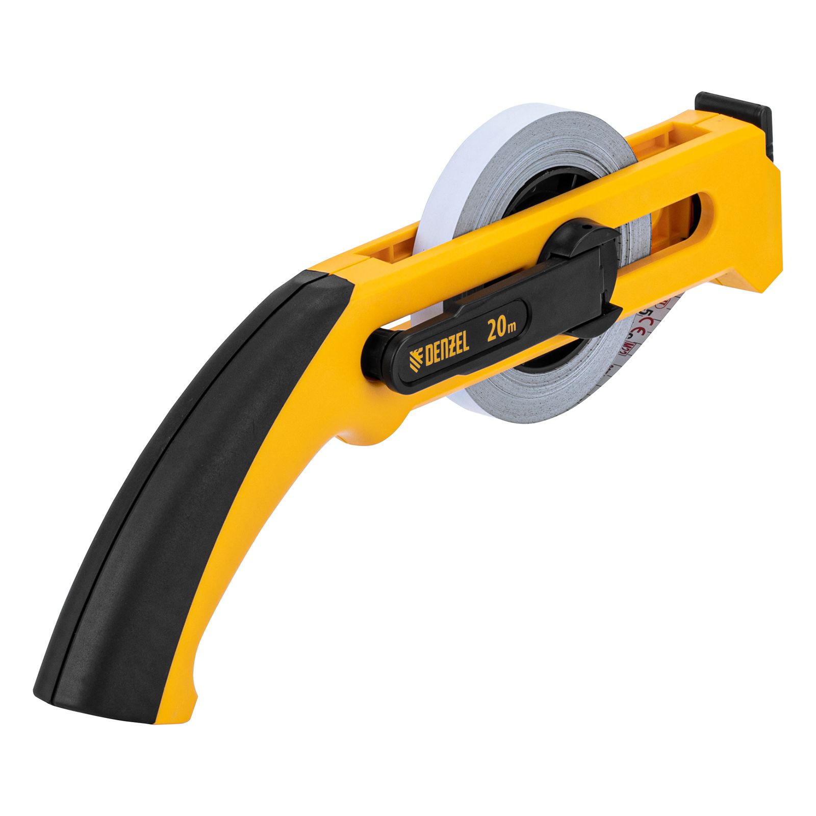 Геодезическая рулетка Denzel 31490 в открытом корпусе, с металлической лентой размером 20 м х 13 мм, с односторонней шкалой, применяется для проведения замеров на открытых участках. Пригодится во время строительных работ, обмеров садовых участков и дорог, обустройства территории.