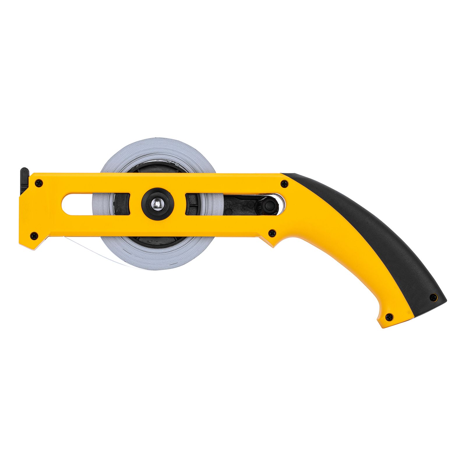 - Удобная фиксация измерительной ленты на объекте — рулетка оснащена кольцом с подвижным зацепом.