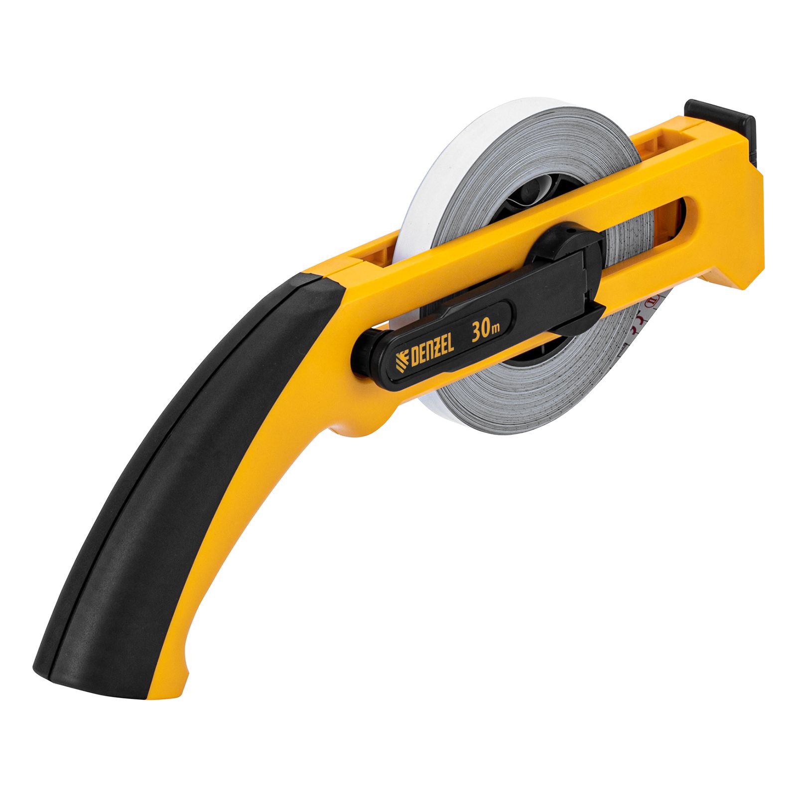 Геодезическая рулетка Denzel 31491 в открытом корпусе, с металлической лентой размером 30 м х 13 мм, с односторонней шкалой, применяется для проведения замеров на открытых участках. Пригодится во время строительных работ, обмеров садовых участков и дорог, обустройства территории.