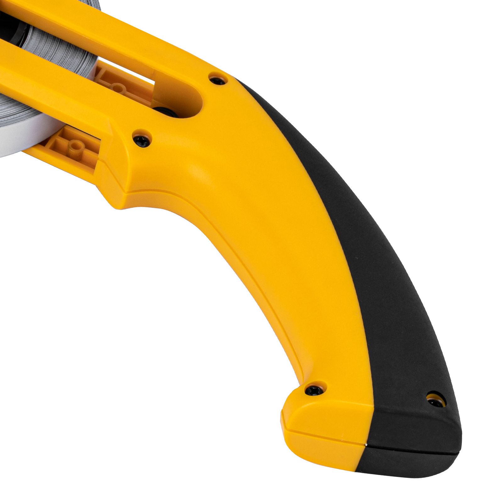 - Удобная фиксация измерительной ленты на объекте — рулетка оснащена кольцом с подвижным зацепом.
