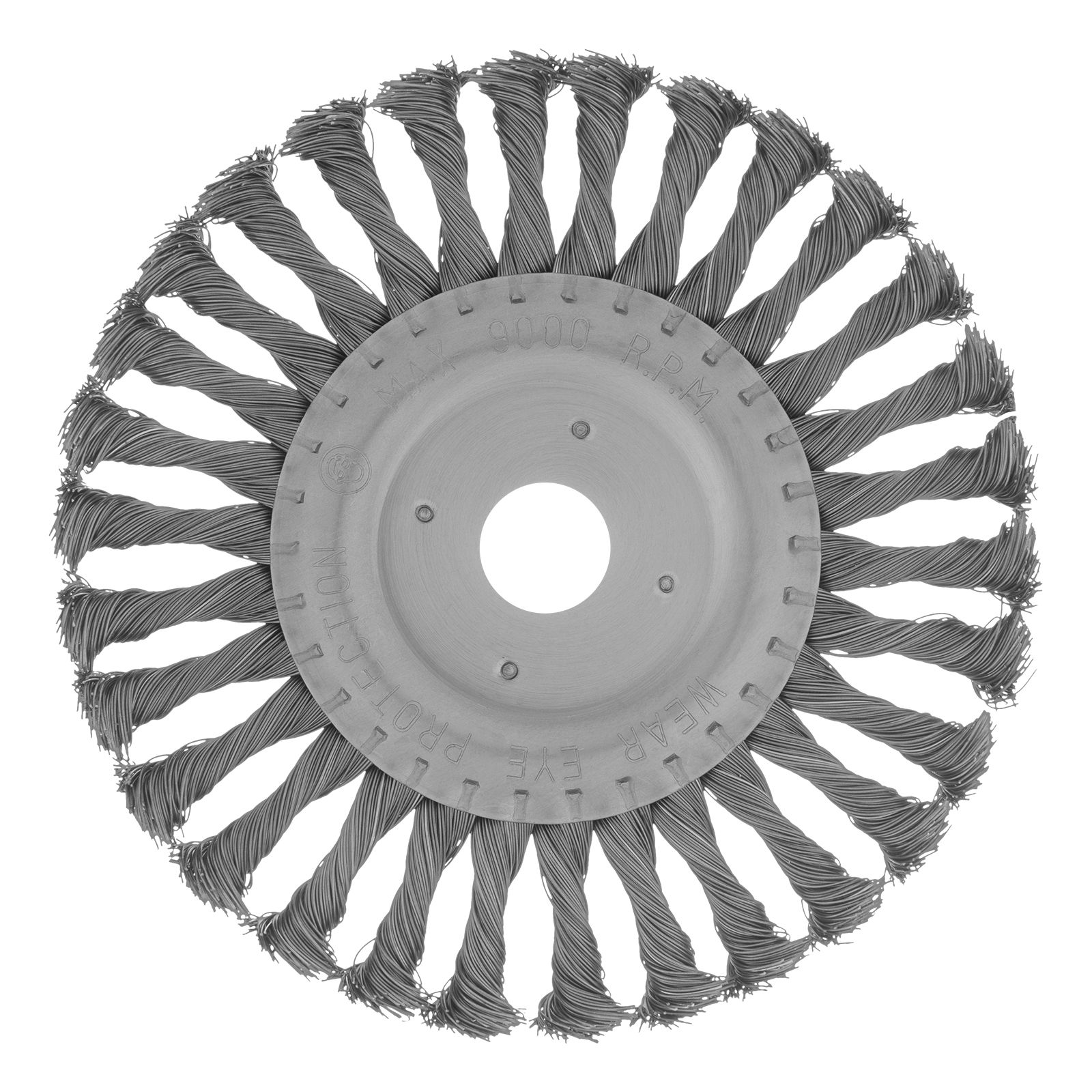 Плоская щетка Matrix 74636 диаметром 175 мм и посадкой 22,2 мм, с щетиной из крученой проволоки толщиной 0,5 мм, устанавливается на вал УШМ, поддерживающей скорость вращения не более 9000 об/мин. Эффективно удаляет загрязнения, толстый слой ржавчины и лакокрасочных материалов с поверхностей, поэтому используется для проведения грубой (черновой) обработки. Плоской щеткой удобно очищать труднодоступные места, в том числе углы и изгибы.