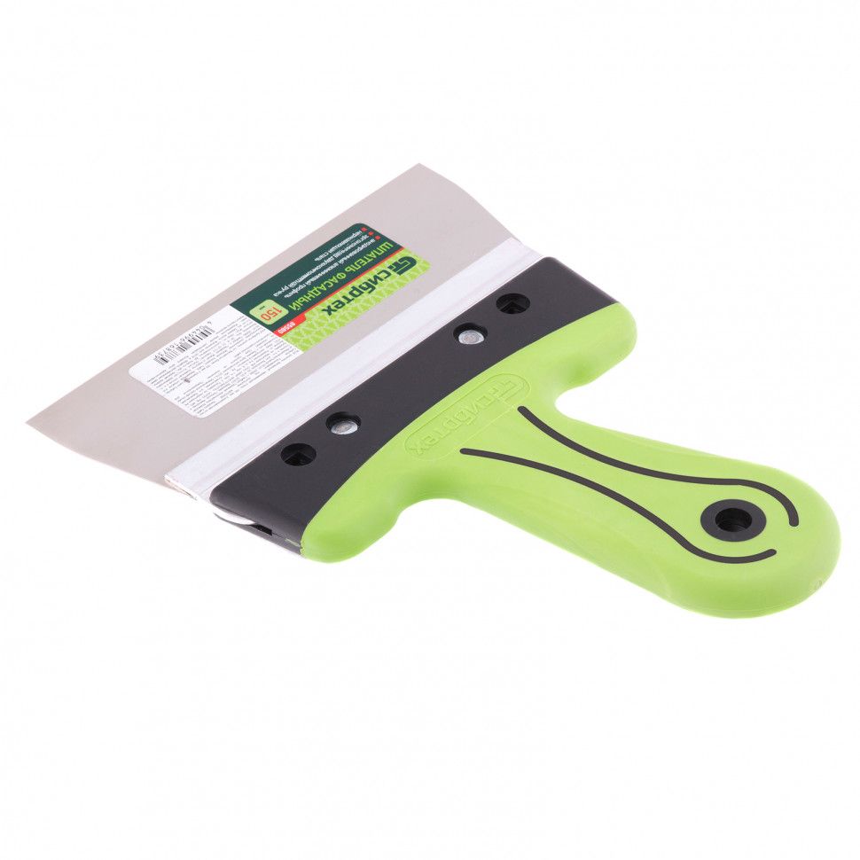 Фасадный шпатель Сибртех 85580 с рабочим полотном шириной 150 мм из нержавеющей стали и 2-компонентной рукояткой предназначен для нанесения, выравнивания и сглаживания отделочных составов, а также проведения других ремонтно-отделочных работ. Инструмент оптимально подходит для заглаживания зашпаклеванных швов.