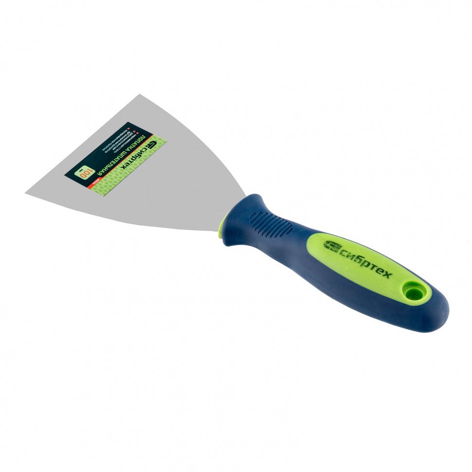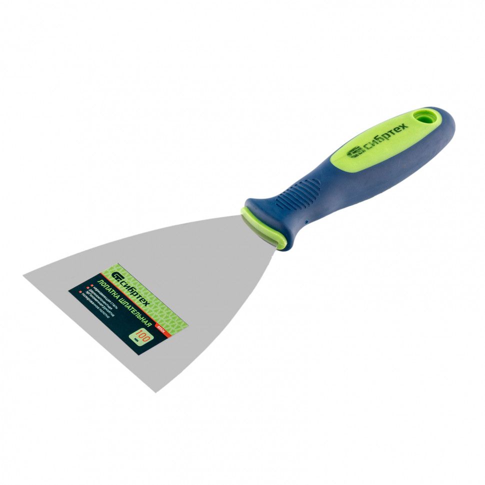 Шпательная лопатка из нержавеющей стали Сибртех 85526 шириной 100 мм, с двухкомпонентной рукояткой, облегчает проведение ремонтно-отделочных работ. Позволяет наносить и разравнивать строительные смеси, шпаклевать швы, заполнять трещины, удалять старые обои и выполнять работы в труднодоступных местах.
