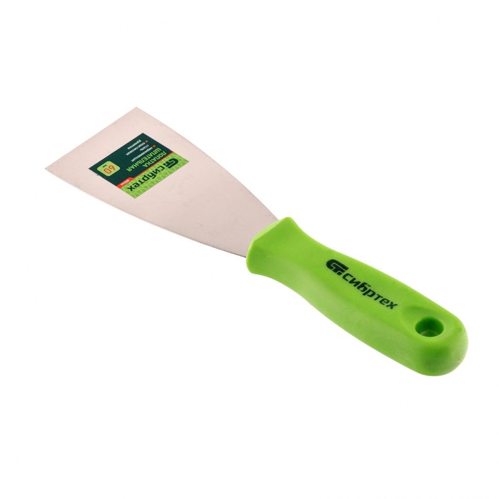 Шпательная лопатка Сибртех 85546 с полотном шириной 60 мм из нержавеющей стали, с пластмассовой ручкой, используется для нанесения, выравнивания и разглаживания строительных растворов и смесей. Пригодится для проведения ремонтно-отделочных работ, подходит для начинающих и профессиональных мастеров.