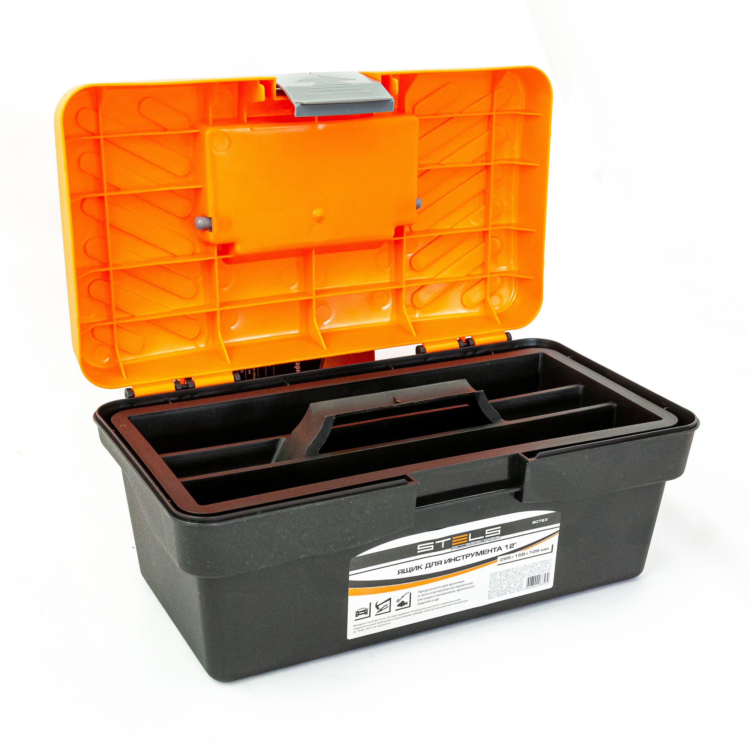Ящик для инструмента Stels 90723 габаритами 285 х 155 х 125 мм (длина 12") изготовлен из пластика и используется для хранения и перемещения инструментов, бытовых мелочей, рыболовных снастей. Крышка ящика крепко закрывается, что обеспечивает сохранность содержимого. Изделие пригодится дома, на даче, в гараже и на рыбалке.