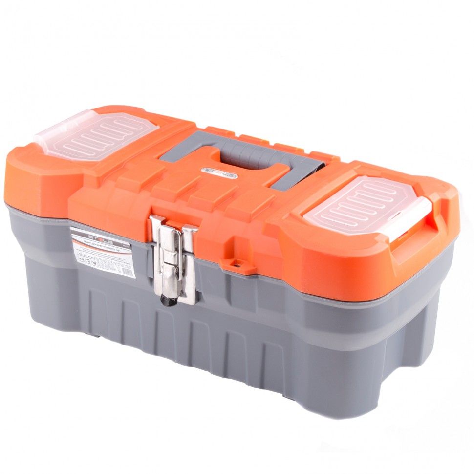 Ящик для инструмента с металлическими замками Stels 90711, 16 дюймов, 410 х 210 х 175 мм, — альтернатива коробке для инструментов. В нем можно расположить ручной инструмент, крепежи, хозяйственные мелочи, а также рыболовные снасти. В крышке имеются встроенные органайзеры для мелких деталей, что увеличивает функциональность ящика. Его удобно брать в поездки, также ящик пригодится дома, на даче или в гараже.